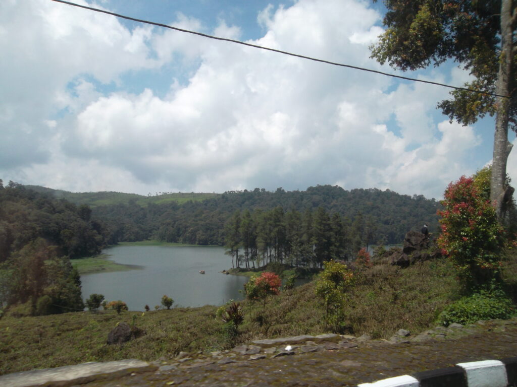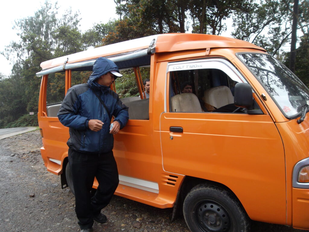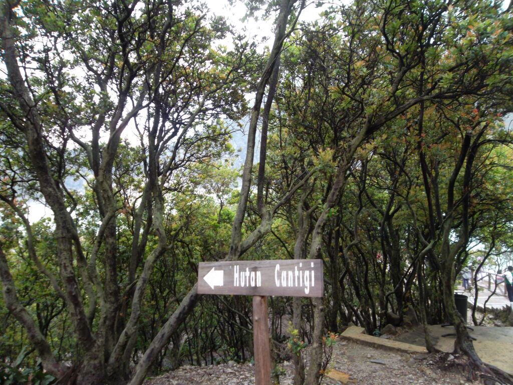Di beberapa titik bisa terlihat asap muncul dari permukaan kawah. Namun bau belerangnya tidak terlalu tercium, jadi walaupun kami sudah menyiapkan masker ujung-ujungnya malah lebih sering tidak dipakai. Setelah puas berjalan-jalan di sekitar kawah, kami pun naik ke atas. Saat pertama turun tadi, kami sempat melihat papan penunjuk arah “Hutan Cantigi” di dekat tangga. Kami pun penasaran dan akhirnya berbelok kesana. Tapi setelah diikuti, di ujungnya tidak ada jalur yang di paving block lagi. Malah ada 2 jalur ke kiri dan ke kanan seperti jalan setapak. Karena sepertinya sepi dan tidak tahu harus kemana, kami pun akhirnya memilih balik lagi saja. Setelah itu kami keluar dan naik ontang-anting lagi menuju ke tempat parkir di bawah. Di dekat tempat parkir banyak penjual makanan dan oleh-oleh. Dari jauh tampak menarik, tapi saya nggak sempat mampir.