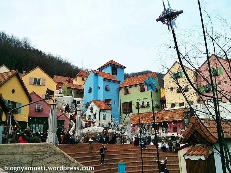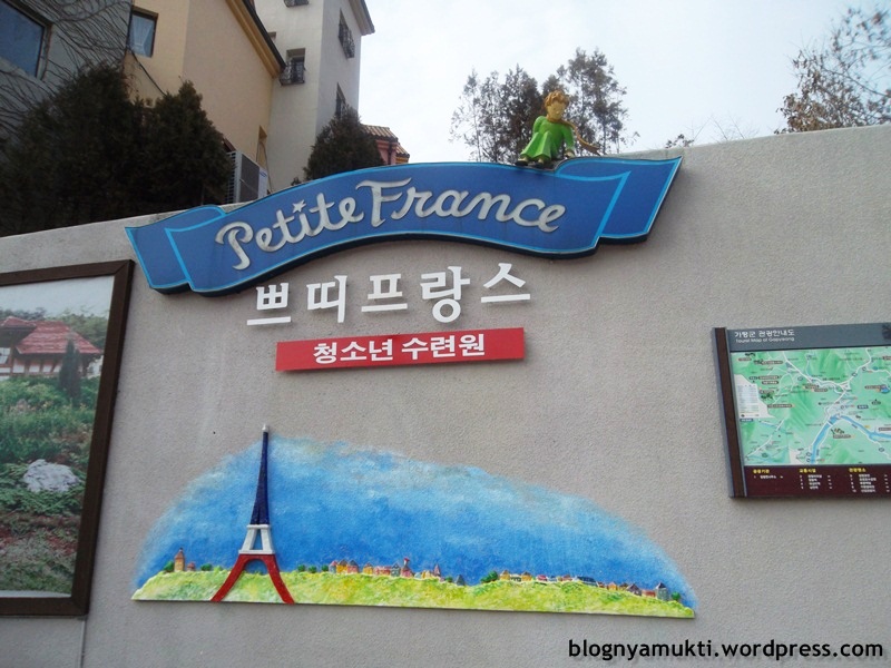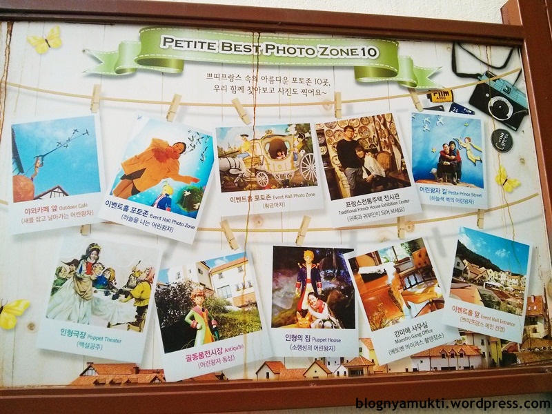 I didn’t have a lot of time here, so I just took pictures. And there’s nothing much to do here anyway. Some interesting places: France house interior showcase, Doll House, and Observation Tower where you can see Cheongpyeongho Lake. But the observation tower wall is full of tourists’ scribble. It’s annoying. Running Man and My Love From The Star had their shooting here. There’s Do Minjun & Cheon Songyi cardboard, too. And I saw a lot of Indonesian tourist here. Haha.