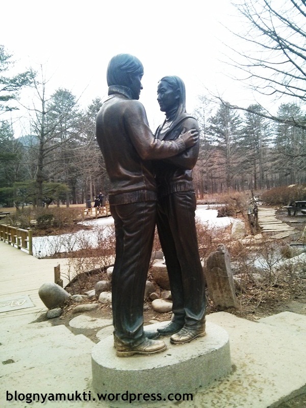 I found the prayer room. Prayed there and go to the restaurant called Dongmun. It’s officially certified as Halal Restaurant No. 4 in Korea. So I can trust them. I eat bulgogi bibimbab there. It’s so delicious. It’s like the first proper meat I eat in Korea. Before, I only ate meat in kebab. After that, I walked around the island to find winter sonata statue. After found it, I took some photos and I walked to the gate to take ferry back. The queue was still long.