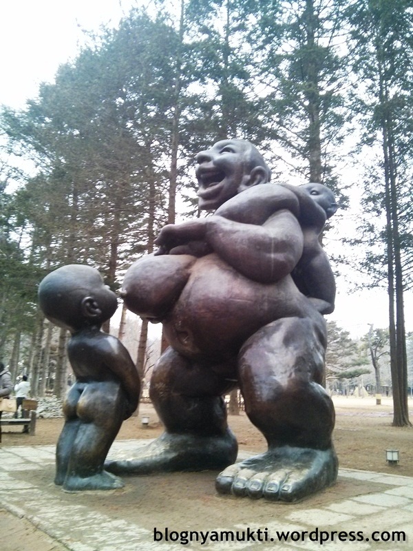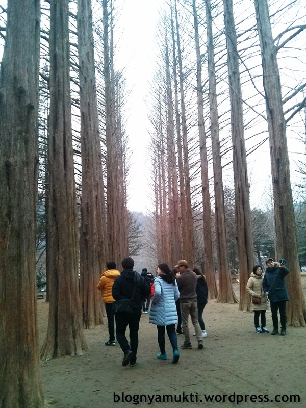 The ticket for foreigner costs 8000 KRW. They called it “VISA” because it’s Naminara Republic. “Nara” means country in Korean. So cute. I need to take ferry to go to the island. And there’s Indonesian flag on the ferry! When I arrived at the Namiseom… ํ! The queue to take ferry back was so long. Maybe because it’s long holiday. I felt uneasy because I was worried I can’t take the last circle bus to subway station. My goals in Nami island: find the praying room, eat at the halal restaurant there, take picture of Winter Sonata statue. Hahaha.