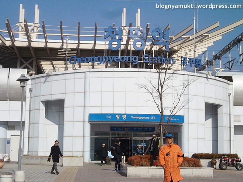 I was leaving at 7am, 30 minutes late from my plan. What a “good” start. lol. My first destination is Cheongpyong Ice Festival. I need 3 hours to reach Cheongpyeong Station. It should be shorter if I took ITX train, but I took regular train and need to transfer 2 times (Gyeongui-Jungang Line from Yongsan to Sangbong, Gyeongchun Line from Sangbong to Cheongpyeong). And the waiting time for the Gyeongchun Line was around 20 minutes.