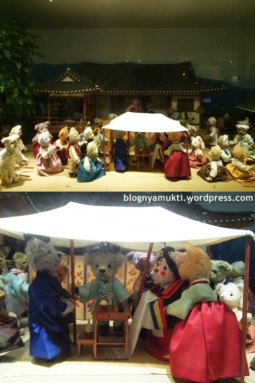 Di ruang kedua ada miniatur pernikahan tradisional Korea, replika lukisan-lukisan terkenal yang tokohnya berubah jadi teddy bear, teddy bear swarovski & louis vuitton, dan yang paling pengen diliat: miniatur teddy bear dari drama Goong (Palace) yang dulu ngetop banget.
