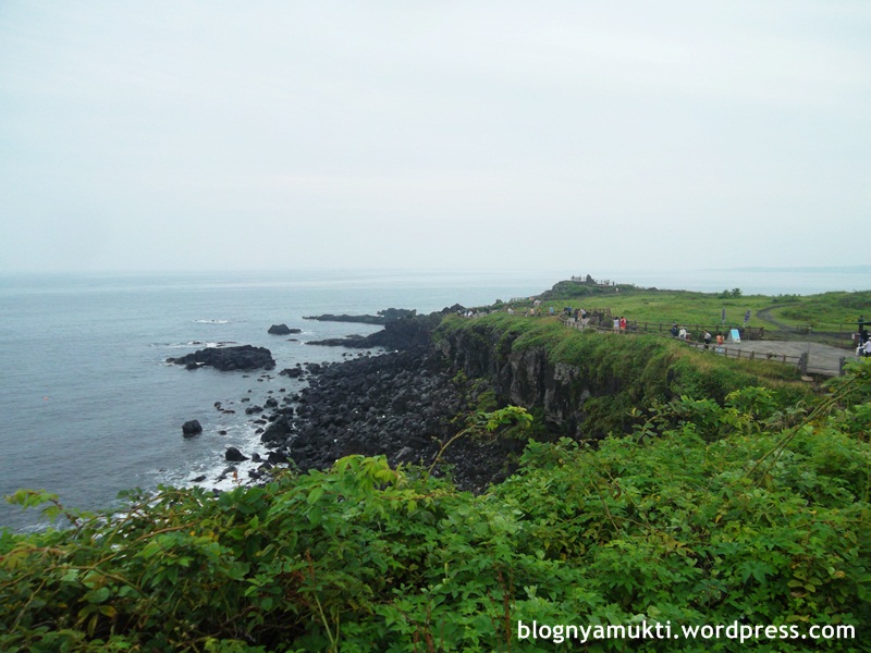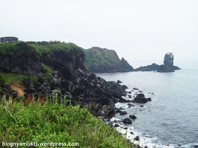Tujuan selanjutnya adalah Seopjikoji. Untuk kesana, saya turun di Goseong-ri Gu Seongsan Nonghyeob (고성리 구 성산농협) bus stop. Dari sana saya naik taksi ke Seopjikoji. Soalnya kalo naik bis, bis yang kesana jarang dan mesti jalan sekitar 1,5 kilo lagi. Ongkos taksi 4000an KRW. Dan ternyata Seopjikoji ini cakeppp. Saya suka banget view tebing dan lautnya. Banyak haenyeo juga  di lautnya. Kerenn. Walopun bakal lebih keren lagi kalo datengnya pas musim semi, soalnya bunga rapeseed lagi pada mekar.