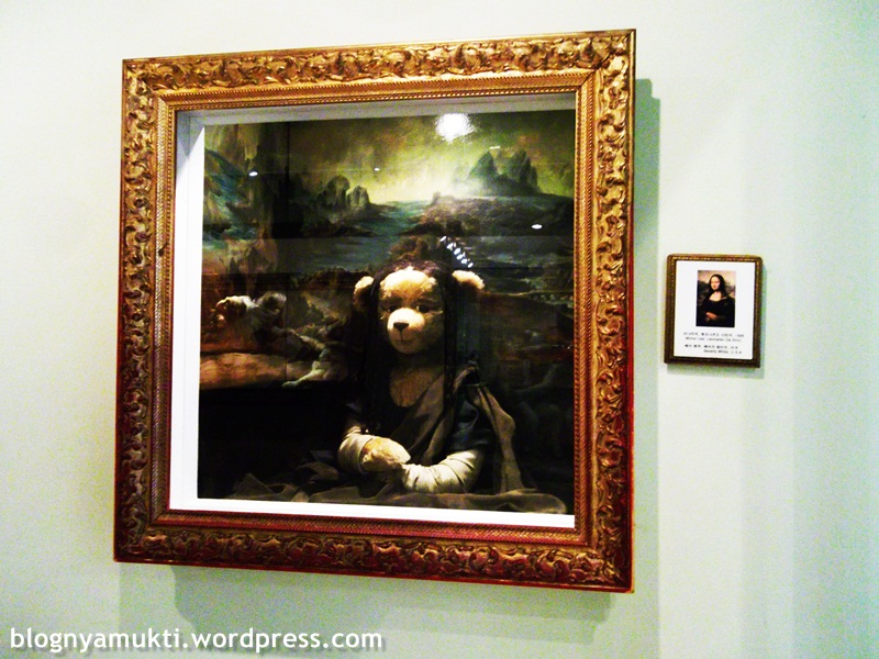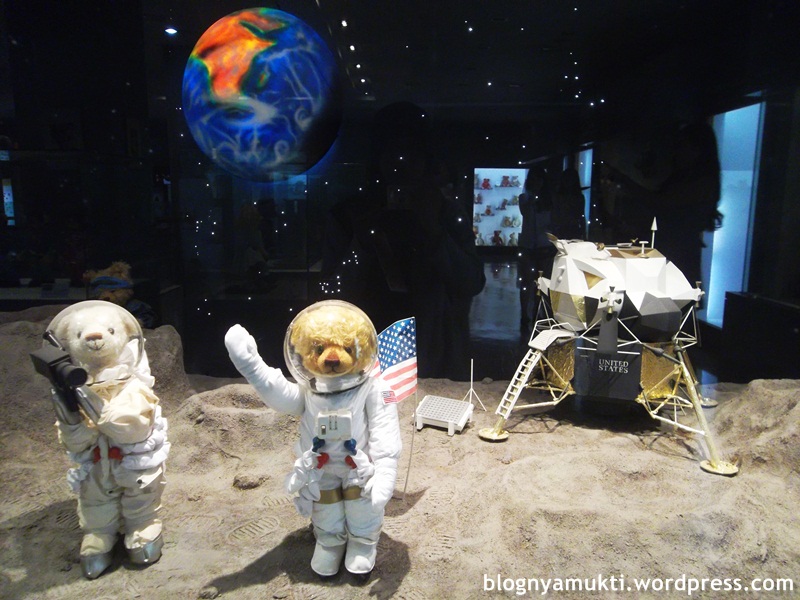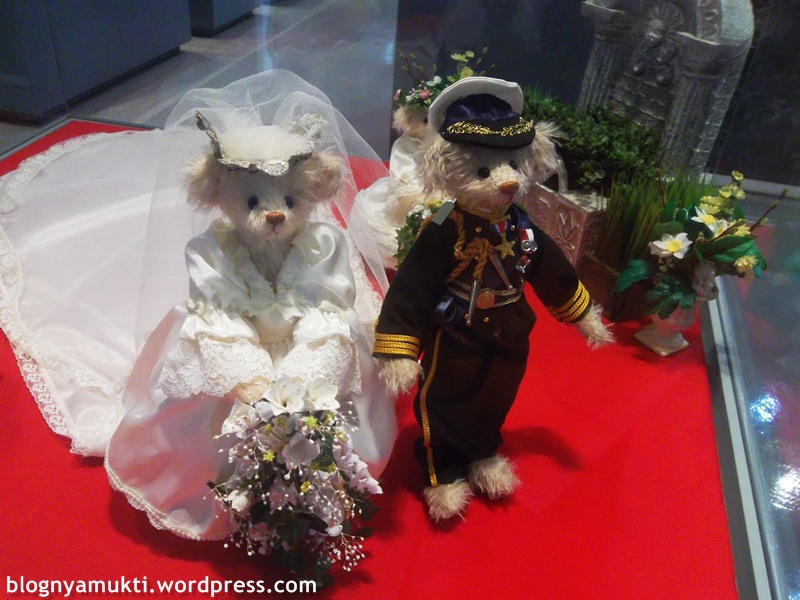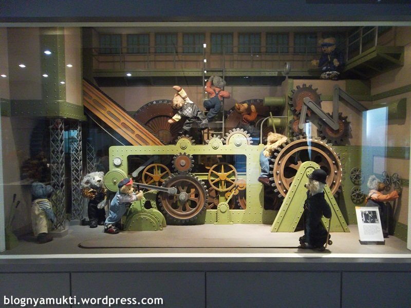 Ruang pertama yang saya kunjungi isinya tentang sejarah gitu, tapi tokoh-tokohnya jadi teddy bear. Terus kalo kita mendekat ke kacanya, boneka-bonekanya bakal bergerak. Lucuu.