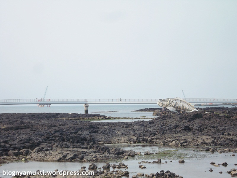 Ada juga jembatan panjang di atas laut dan patung ikan yang bisa nyala kalau malem. Saya sempat naik jembatannya, dan agak-agak horor karena anginnya kenceng banget. Haha.