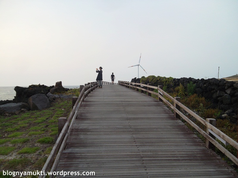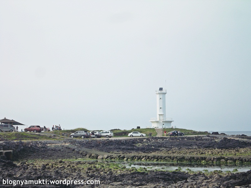 Sebenernya tempat ini bukanlah tempat wisata populer. Dan yang kesini pun biasanya bawa mobil karena tempat ini adalah salah satu recommended driving course. Saya kesini gara-gara jadi korban drama. LOL. Tempat ini, lebih tepatnya lighthouse-nya, muncul di drama yang saya lagi gandrungi, Warm & Cozy (맨도롱 또똣). Drama ini lokasi syutingnya di Jeju dan itinerary perjalanan saya kali ini kurang lebihnya bakal mengunjungi lokasi-lokasi itu. Hahaha.