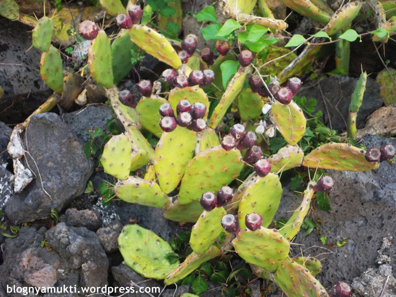 Saya baru tau kalau ternyata kaktus bisa tumbuh di sela-sela batu kayak gitu. Makin terpesonalah saya sama si kaktus. Ada kaktus yang lagi berbuah juga karena lagi musim panas.