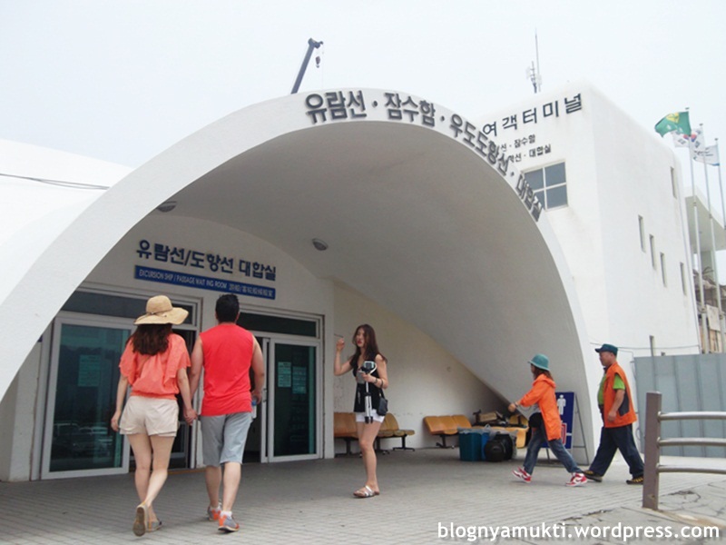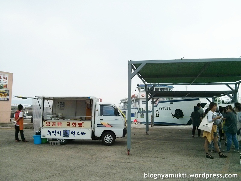 Lanjut ke tujuan berikutnya, Udo Island! Untuk kesini, saya perlu naik kapal dari Seongsan Harbor (성산항). Kalau naik bis 701, turun di Seongsan Harbour Entrance Bus Stop (성산항입구) . Dari sana, jalan kira-kira 700m untuk sampai ke Seongsan Harbour. Begitu sampe sana saya langsung buru-buru beli tiket karena jadwal keberangkatan kapal yang paling cepet tinggal 10 menit lagi. Harga tiket pulang pergi dan tiket masuk untuk ke pulau 5500 KRW. Perlu nulis nama dan kontak kita juga di form khusus. Nanti form ini dikasih ke petugas yang ngecek tiket.