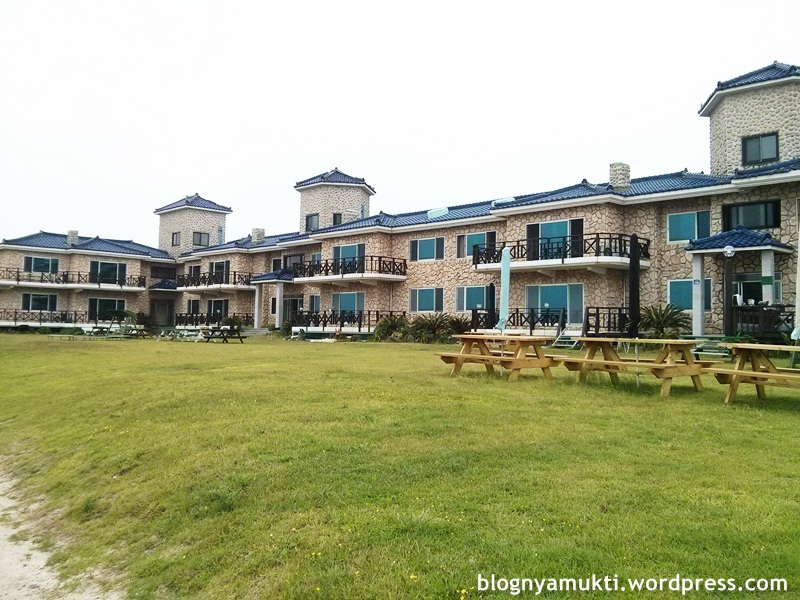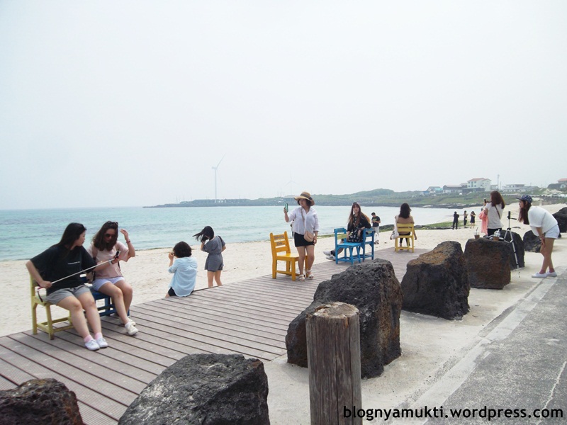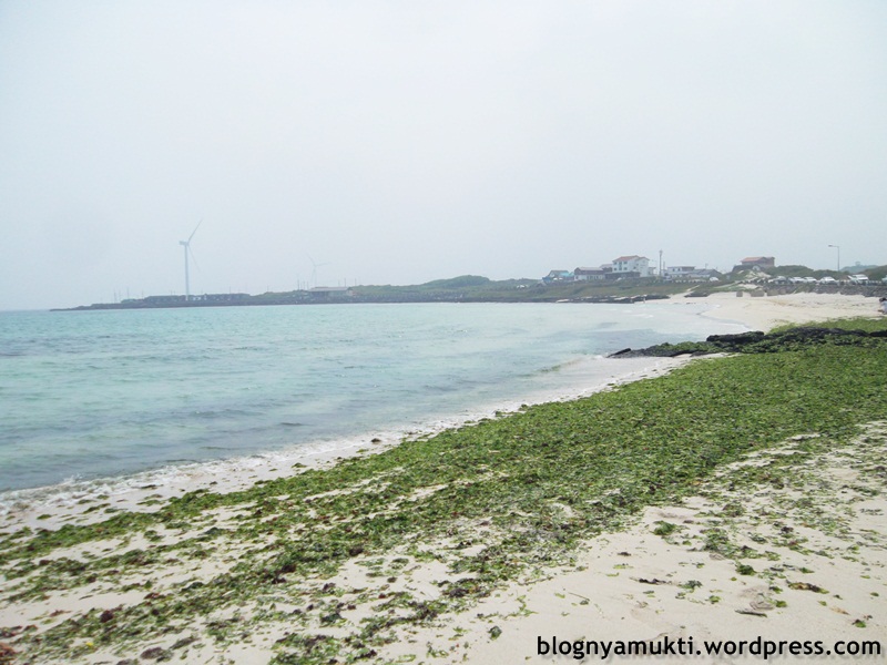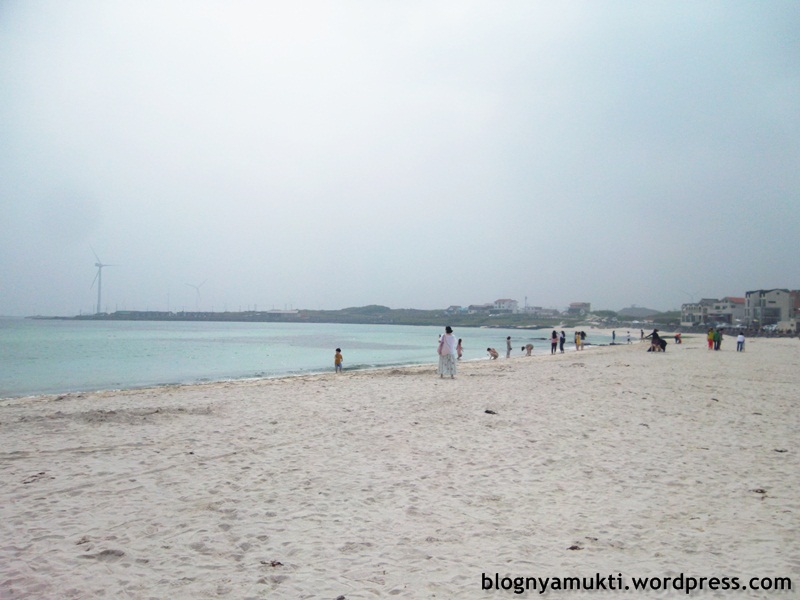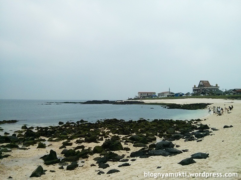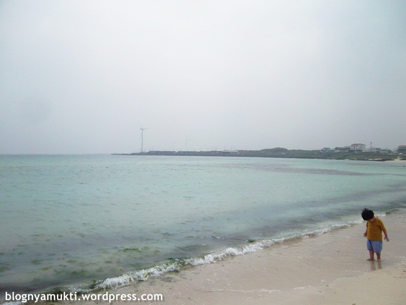 Ini pantai pertama yang saya temui di Udo. Namanya Seobinbaeksa. Pasirnya putih tapi kasar karena banyak koralnya.