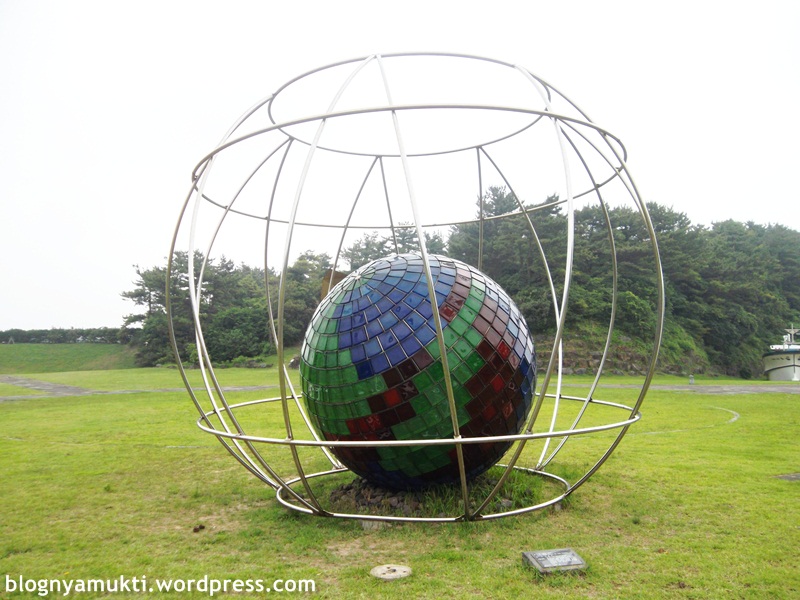 Setelah lanjut jalan lagi, saya nemu patung batu khas jeju (dol hareubang – 돌 하르방). Ada tulisan 소원을 말해봐 (sowon-eul malhaebwa) di badan patungnya. Artinya “tell me your wish”. Kkkk. Itu judul asli dari lagunya SNSD yang judul inggrisnya jadi Genie.
