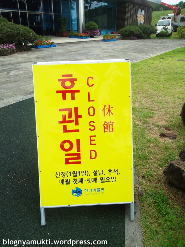 Puas main di Woljeongri Beach, saya menuju ke tempat selanjutnya: Haenyeo Museum. Haenyeo adalah penyelam wanita yang mencari hasil laut secara tradisional. Nah, di Jeju ini Haenyeo-nya banyak banget. Bahkan kalo ngomongin Haenyeo, yang kebayang langsung Jeju. Ada yang bilang juga kalo Haenyeo adalah Jeju Mermaid. Kalo mau liat documentary-nya, silakan nonton ini.