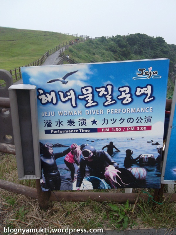 Di kompleks Seongsan Ilchulbong juga ada Haenyeo House. Disana ada performance haenyeo 2 kali sehari, jam 13.30 dan 15.00.