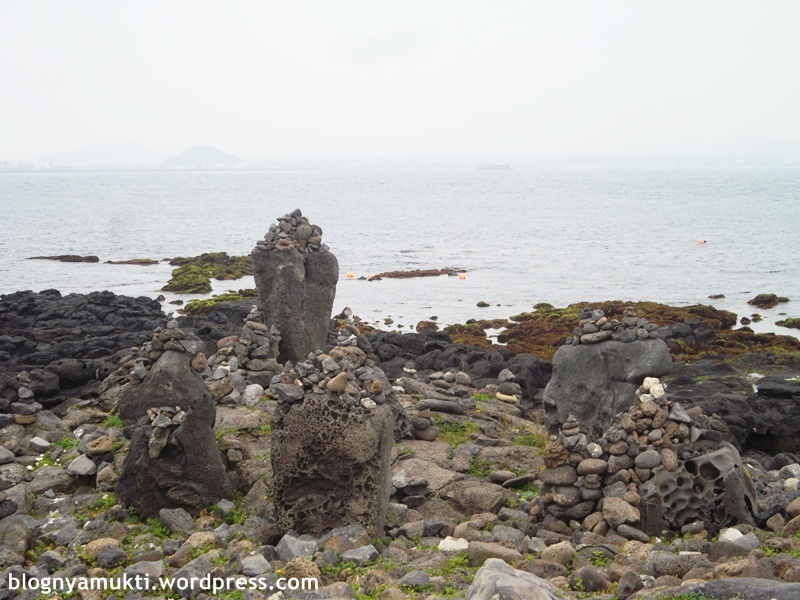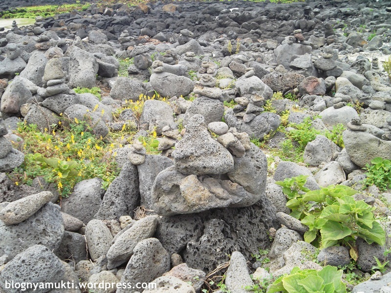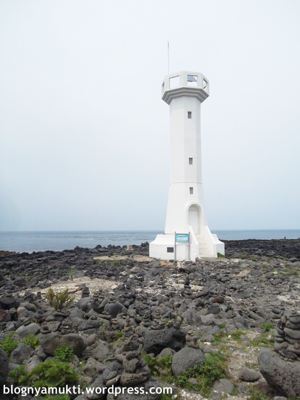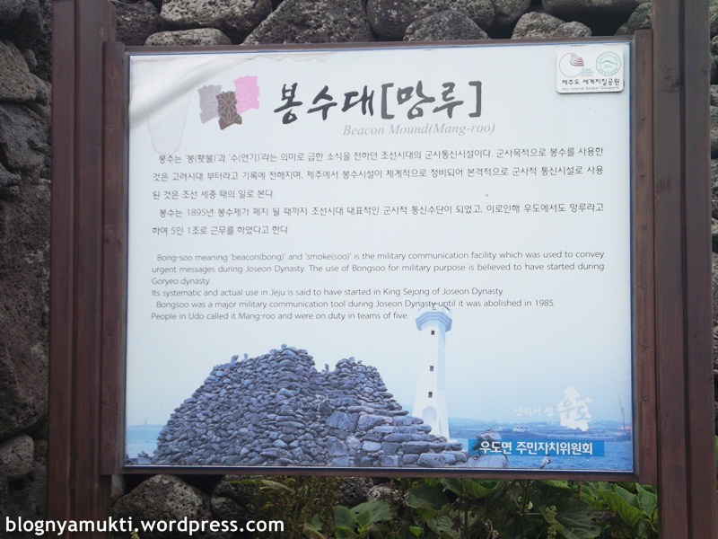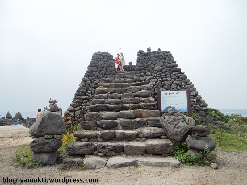 Ada lagi Bongsoo (literally smoke beacon), yang merupakan fasilitas komunikasi militer yang digunakan untuk menyampaikan pesan selama Dinasti Joseon. Di Udo sendiri, Bongsoo punya nama lokal yaitu Mangroo. Di dekat bongsoo, ada lighthouse kecil. Ada lagi batu yang disusun menyerupai piramida kecil. Mungkin ada kepercayaan khusus tentang batu-batu ini. Soalnya nggak cuma disini saya menemukan susunan batu seperti ini. Saat saya ke Land of Morning Calm, ada juga susunan batu seperti ini di sungai yang sedang kering. Dan pengunjung lain pun ikut menyusun piramida kecil baru atau menambah batu di susunan yang sudah ada. Entah cuma iseng atau ada maksud tertentu.