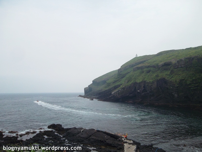 Puas menikmati view Udo Peak, saya pun kembali ke arah pelabuhan dan mengembalikan sepeda. Tadinya mau makan dulu. Pengen nyicip abalone dan makanan khas lainnya. Tapi udah ada kapal yang dateng. Karena saya males nunggu 1 jam lagi kalo mau naik kapal selanjutnya, saya pun nggak jadi makan dan buru-buru antre kapal.