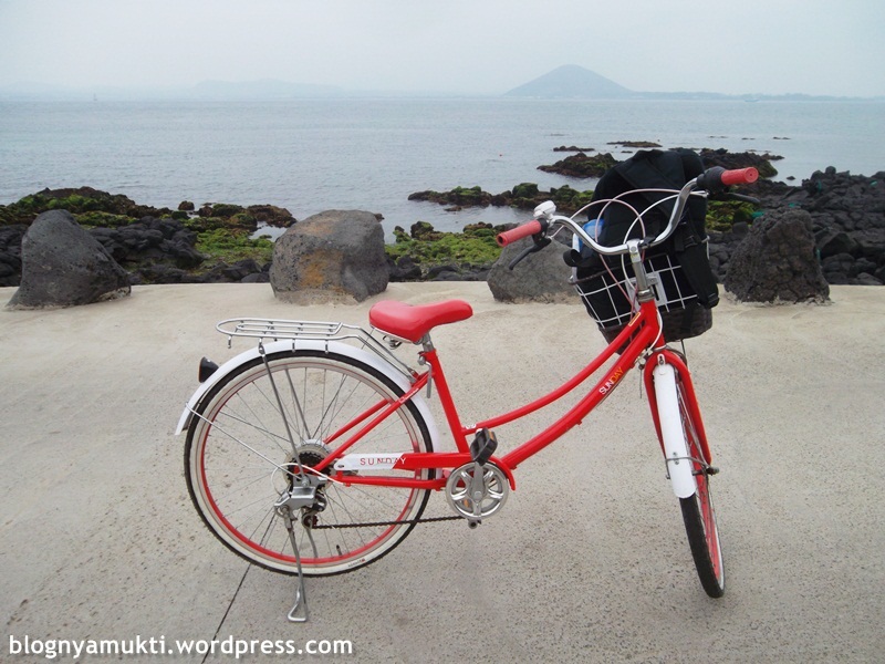 Untuk mengelilingi Udo ada beberapa cara. Pertama, cara gampang, bisa naik shuttle bus (per 30 menit) atau tour bus (all day ticket 5000 KRW). Kedua, bisa nyewa motor, ATV, atau sepeda. Banyak banget penyewaan di sekitar Udo. Harganya juga rata-rata sama antara satu dan yang lainnya. Saya nyewa sepeda  dengan harga 10000 KRW/3 jam. Kata yang punya, dalam 3 jam itu kita bisa muterin pulau sambil moto-moto, mampir ke restoran buat makan juga cukup. *kecanduan setelah naek sepeda keliling 3 pulau*