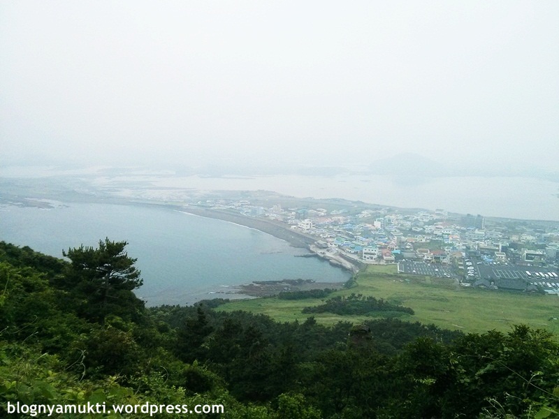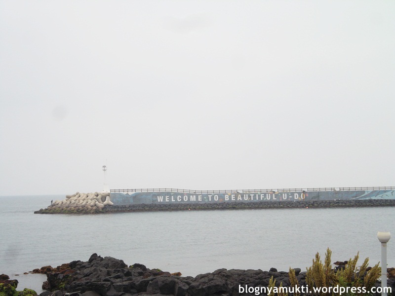 Perjalanan ke Udo memakan waktu sekitar 15-20 menit. Udo adalah pulau kecil di sekitar Jeju. Bentuknya mirip sapi yang sedang berbaring, makanya dinamakan Udo yang artinya literally cow island. Udo ini kadang disebut juga miniaturnya Jeju karena kondisi alam dan budayanya yang persis banget dengan Jeju. Kalo di Jeju ada Seongsan Ilchulbong (Seongsan Sunrise Peak), di Udo ada Udo Peak. Disini juga ada haenyeo, jalan batu, dan makam batu seperti di Jeju. Ada sekitar 700 rumah dan 1800 penduduk di Udo. Mata pencahariannya kebanyakan sebagai petani dan nelayan.