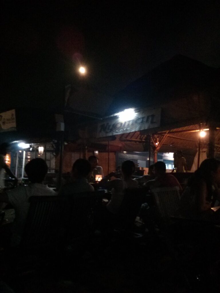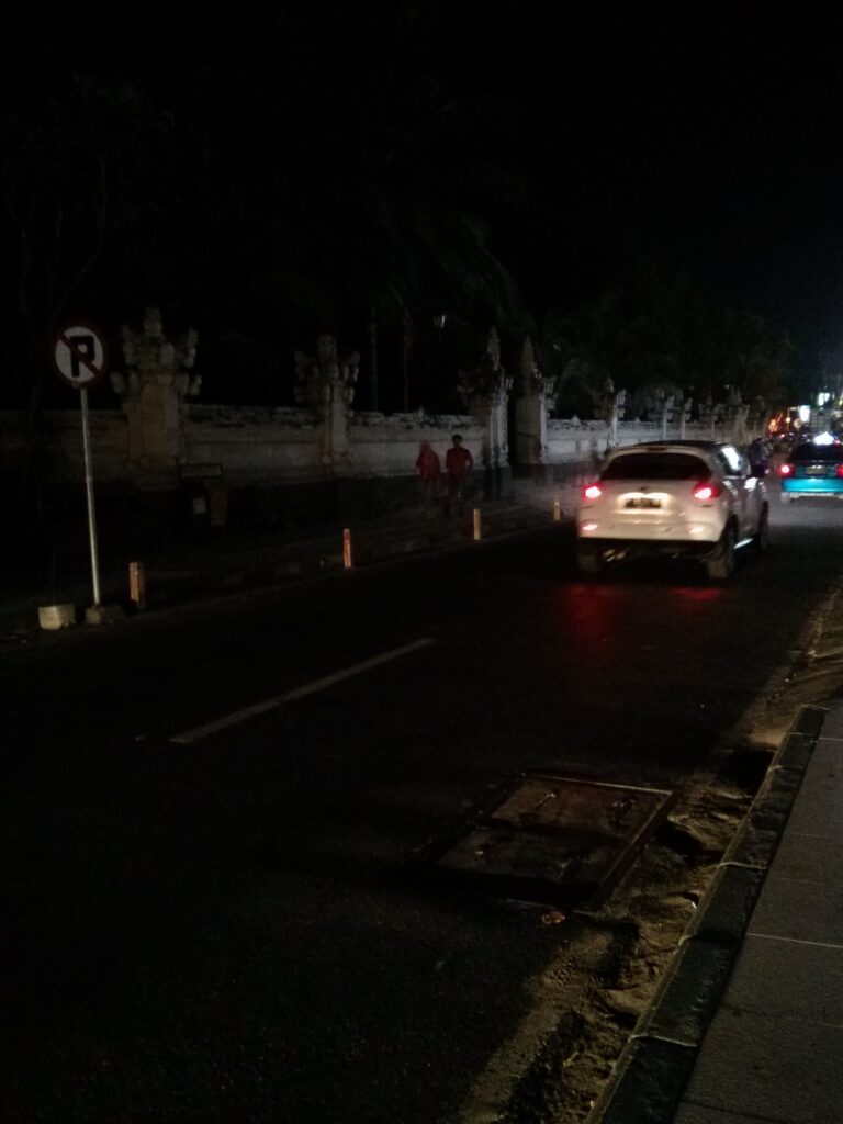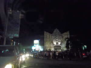 Selesai makan, jalan ke arah pantai kuta. Karena malam, dari luar aja keliatan gelap banget jadinya nggak masuk deh. Belanja cemilan buat besoknya di minimarket. Abis itu cari poppies lane 2 yang merupakan jalan tembus ke legian biar nggak usah muter. Pas ke hotel naik taksi lewat jalan ini soalnya. Pas ketemu, karena udah malem eh jalannya gelap banget. Toko-toko disitu udah pada tutup semua. Kami pun jalan cepat-cepat. Ngikutin jalan kok nggak sampe-sampe, padahal pas naik taksi kayaknya nggak jauh. Udah takut salah jalan aja, mana di jalan ketemu banyak bule yang udah bawa botol bir. Ada lagi bule-bule alay yang ngebut-ngebutan motor di gang sempit, boti pula. Tambah aneh karena kita berdua pake jilbab. Haha. Sampe di legian, ujungnya poppies lane 2 ini deket ground zero. Dan di daerah situlah yang ternyata rame pas malem karena banyak club, bar, dan sejenisnya. Jalan cepet-cepet ke hotel, pas jalan ada aja yang nawarin “happy hour happy hour”. Yaelah mbak yang bener aja =_=
