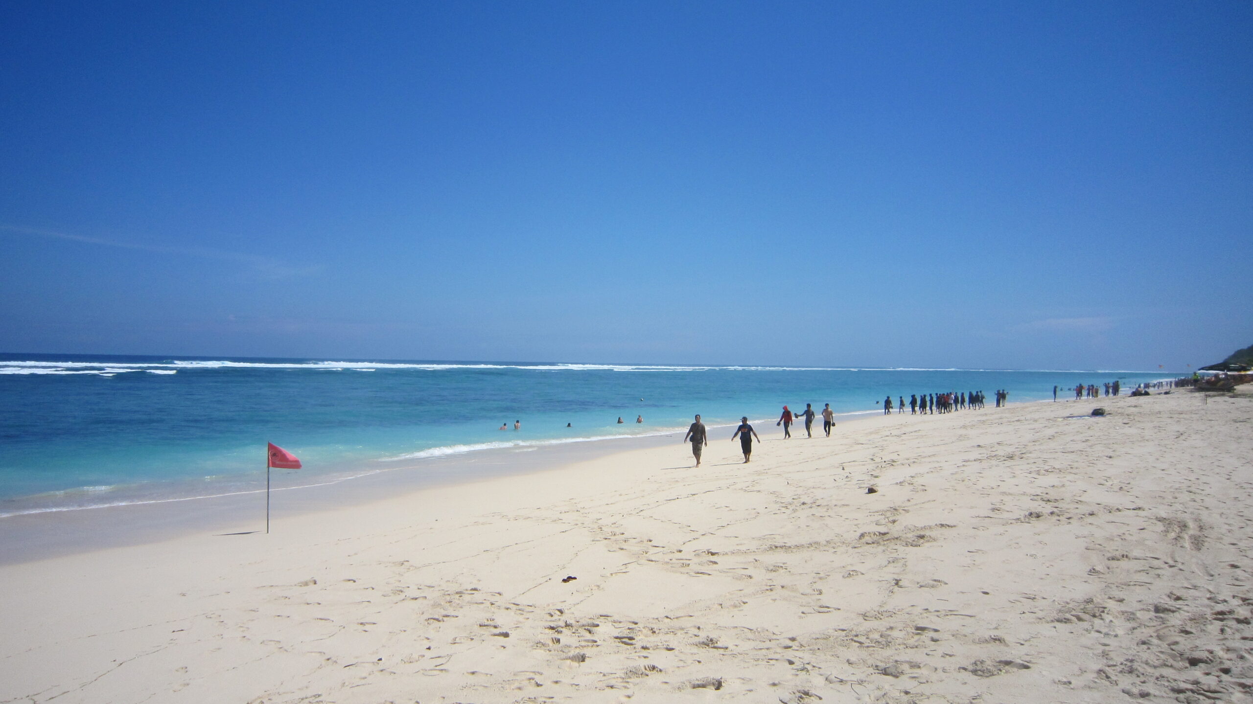 Pantai pandawa cukup luas. Pantai ini ramai oleh pengunjung domestik ataupun internasional, tapi tidak terlalu padat sehingga masih nyaman untuk dikunjungi. Yang bermain di air kebanyakan bule, banyak juga yang berjemur saja. Di pantai pandawa, kami cuma menyusuri pantai dan foto-foto. Menikmati pemandangan ๐