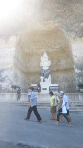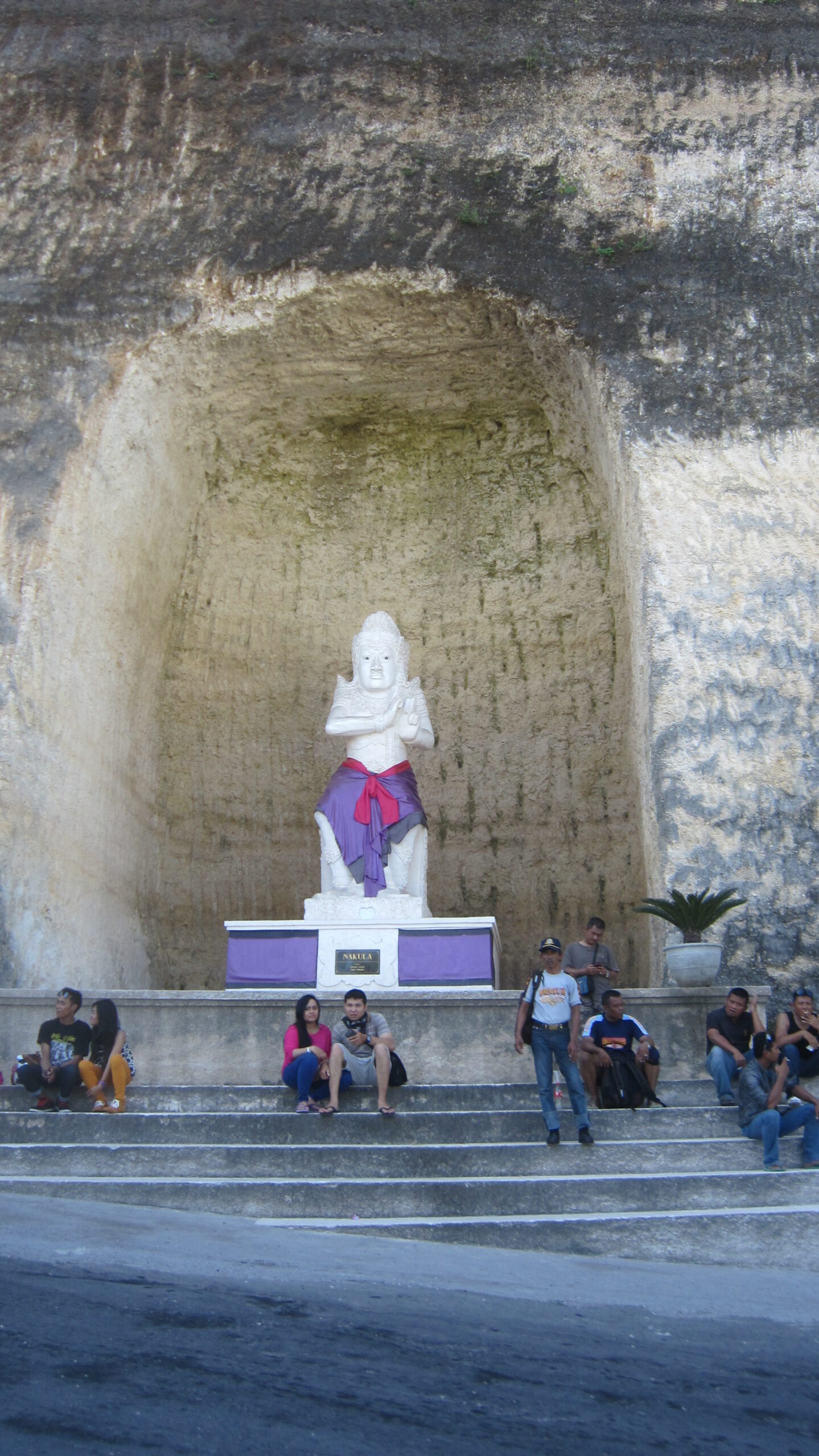 Mendekati pantai pandawa, kami bisa melihat bukit-bukit kapur. Kemudian ada pula patung raksasa pandawa dan ibunya di cerukan bukit. Oh, mungkin karena ini dinamakan pantai pandawa. Seingat saya, tidak semua pandawa ada disana. Kalau tidak salah, tidak ada yudistira. Malah ada patung tikus, entah kenapa. Dari atas bukit mulai terlihat pantainya. Bagus sekali. Setelah parkir mobil, kami pun berjalan mendekati pantai. Karena saat itu cuacanya panas luar biasa, beberapa dari kami membawa payung. Haha, bukan bali kalo nggak panas.