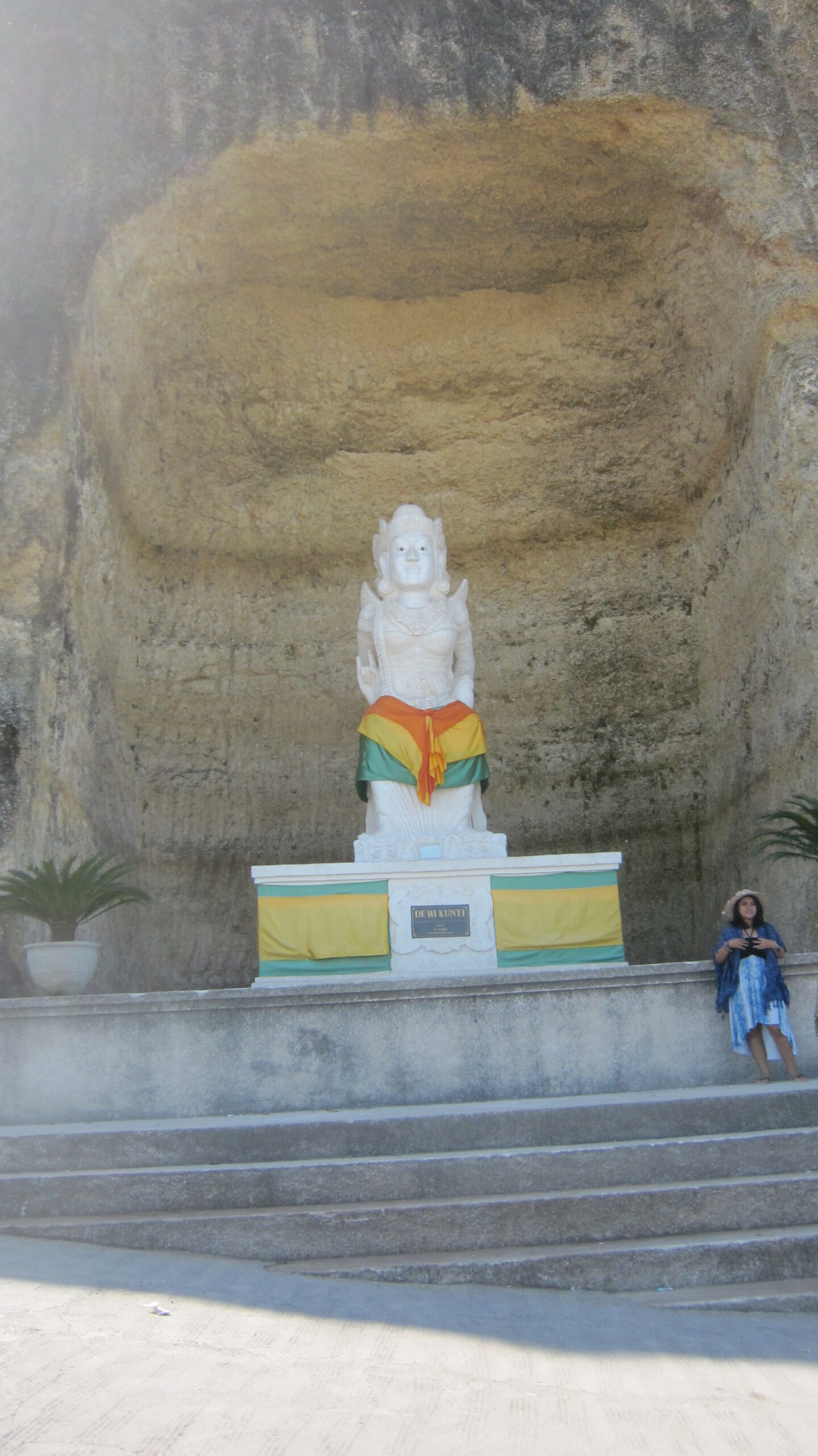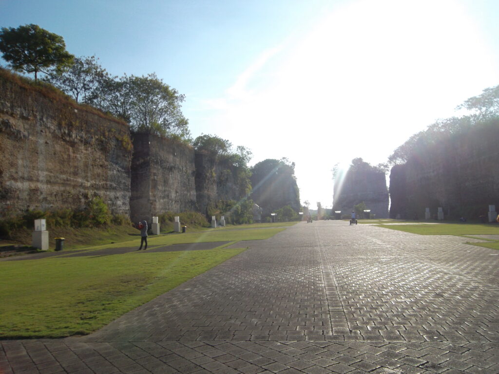 Tujuan selanjutnya adalah GWK! Katanya sih belum ke Bali kalau belum kesini. Harga tiket GWK cukup mahal dibandingkan tempat wisata lainnya disini. Untuk wisatawan lokal harganya 50ribu per orang. Disini kita bisa melihat bukit-bukit kapur yang dibelah. Dan yang pasti bisa melihat patung garuda & wisnu raksasa yang terkenal itu. Besar sih, tapi nggak sebesar ekspektasi saya. Di dekat patung wisnu ada mata air yang katanya nggak pernah kering dan sering jadi tempat meminta permohonan. Di sekitar situ juga ada teropong yang bisa kita gunakan untuk melihat sekitar. Tapi bayar lagi ke petugas, kalau nggak salah 5000 untuk 3 menit.