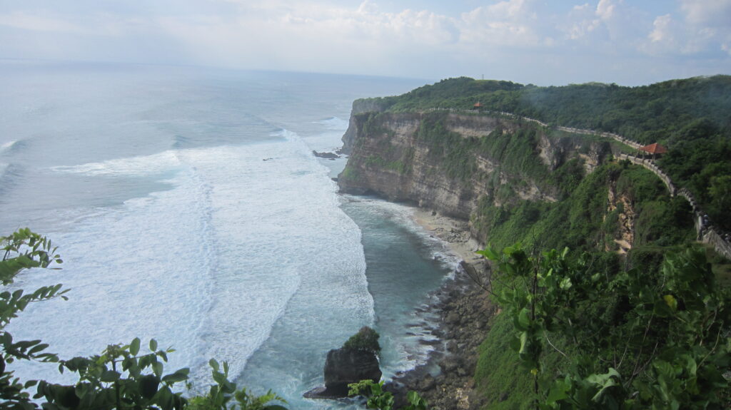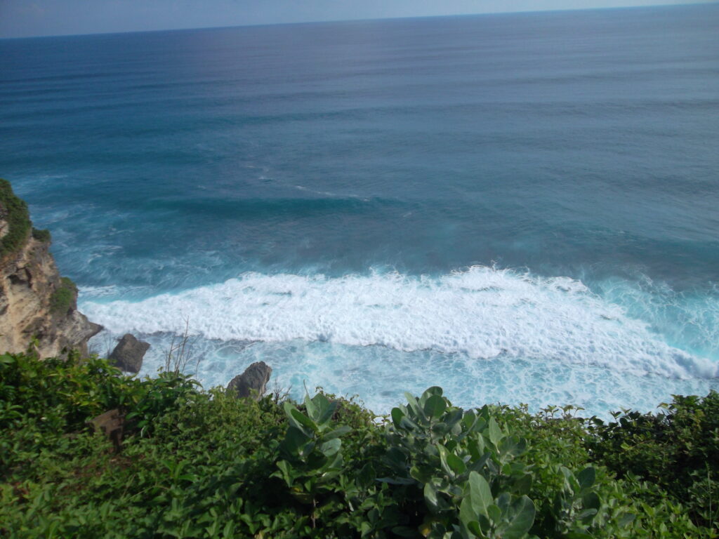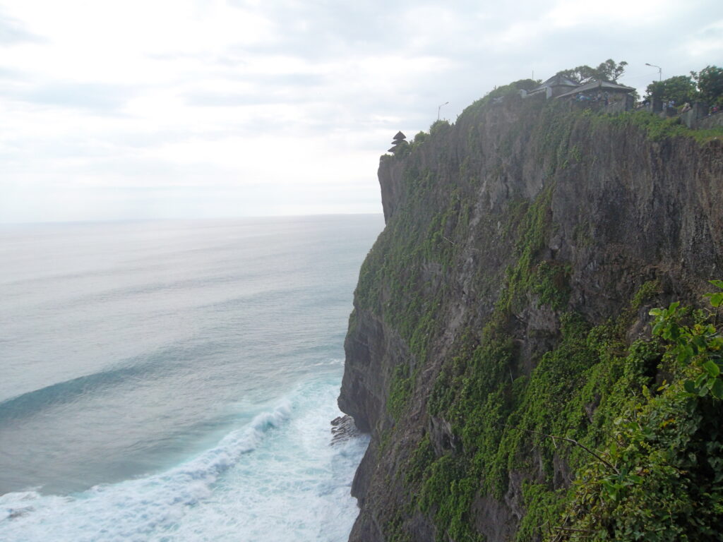 Begitu sampai di tebing, terlihatlah pura uluwatu dari jauh. Oh rupanya itu yang sering muncul di foto. Dari tebing juga bisa terlihat lautan di bawah, suara ombak yang menabrak tebing pun bisa terdengar. Waahh benar-benar berada di pinggir pulau Bali.