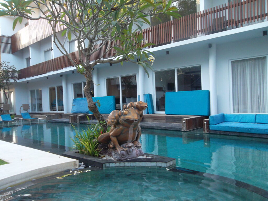 Oh iya, kami nginep di legian bukan nyari yang kayak gitu. Haha. Kebetulan nemu promo hotelnya di groupon, dapet harga 350ribu semalem. Nama hotelnya Aquarius Star Hotel. Lumayan bangetlah kalo dibandingin fasilitasnya. Dan mikirnya kalo di legian lokasinya di tengah-tengah, jadi mau ke daerah utara atau selatan nggak terlalu jauh.