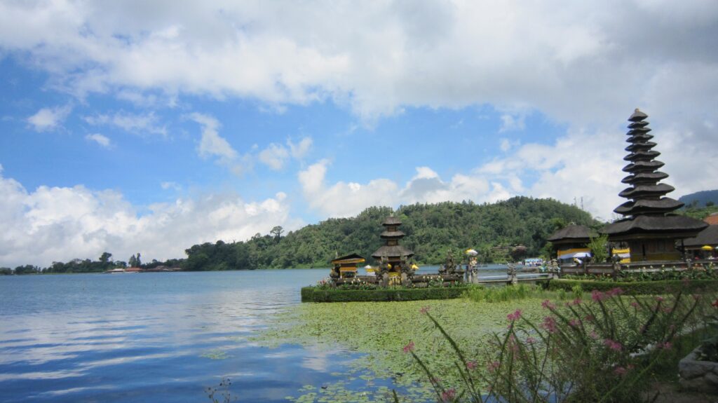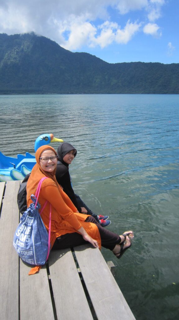 Menurut vita, pura ulun danu ini justru bukan pura utama di komplek pura disitu. Pura utama tepat berada di seberang pura ulun danu. Di danau ini ada penyewaan bebek-bebekan. Kami berjalan ke dermaga tempat si bebek-bebek diparkir. Duduk-duduk disitu sambil melihat pemandangan pura, danau, dan bukit di sekitarnya. Udara di bedugul lumayan sejuk karena posisinya yang di dataran tinggi. Dari sana kemudian kami pindah ke lapangan rumput gitu. Foto-foto disana karena dari situ view ke danau dan bukitnya bagus banget.
