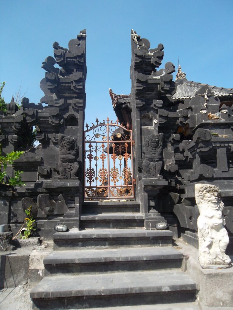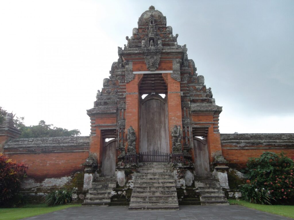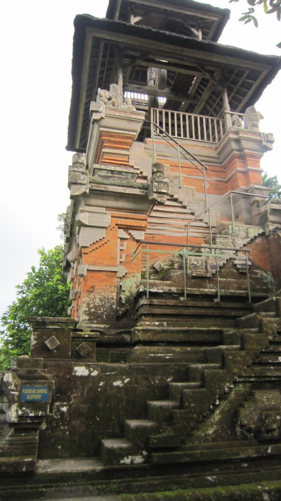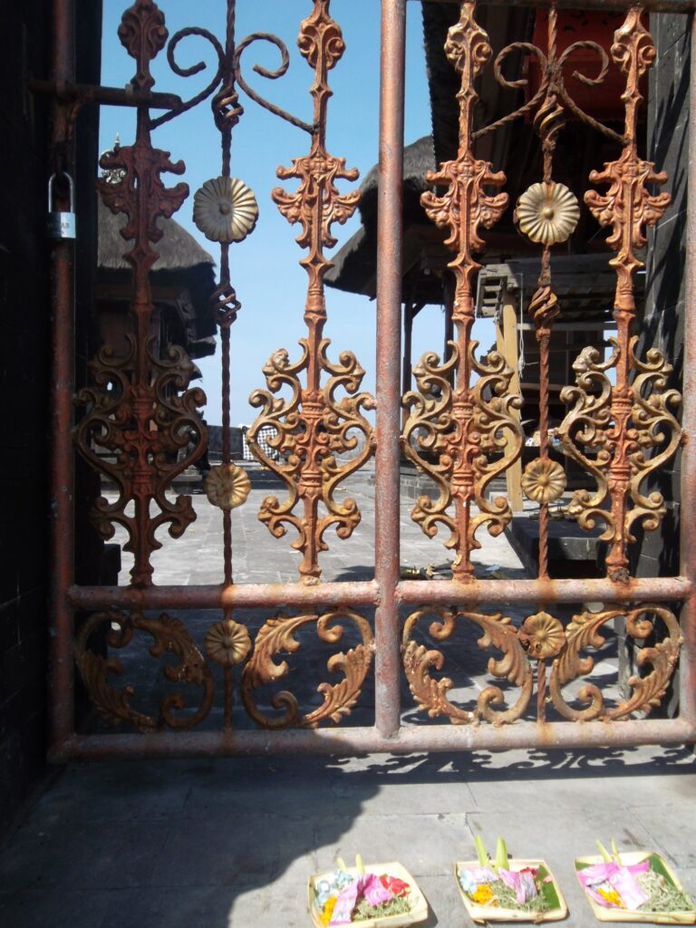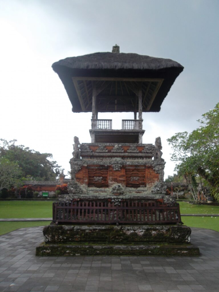 Di dekat gerbang masuk, kita bisa melihat taman yang ada air mancurnya. Masuk lebih dalam, ada pura di tengah-tengah. Di depannya ada gerbang besar yang ditutup. Pada saat tertentu saja gerbang ini dibuka. Di dekatnya ada semacam gazebo yang berisi lukisan. Di area ini juga ada menara yang ada kentongan di bagian atasnya. Saya lupa apa namanya. Kita bisa naik ke atasnya, tapi hati-hati tangganya licin.