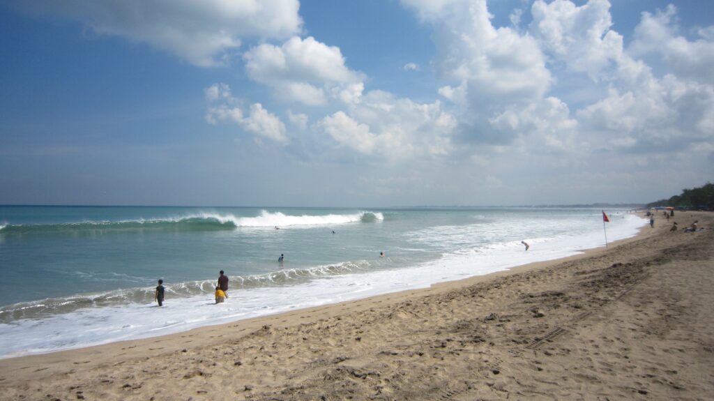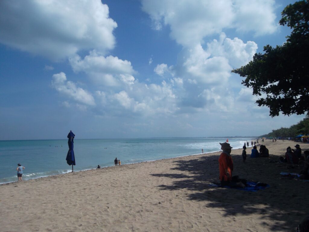 Setelah sarapan, kami jalan ke pantai kuta. Akhirnya saya ke pantai kuta. Yeayy. Ekspektasi saya terhadap pantai kuta sangatlah rendah karena di review trip advisor semuanya bilang kuta itu terlalu rame dan kotor. Tapi untungnya pas saya kesana tidak separah yang saya bayangkan. Di kuta banyak yang sedang berselancar. Seru juga melihatnya. Siang itu panasnya luarr biasa, tapi para peselancar tetap semangat.