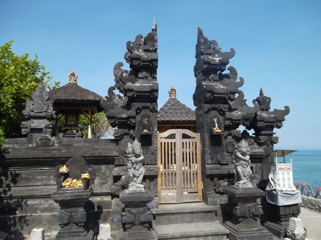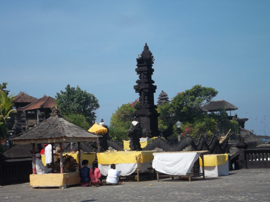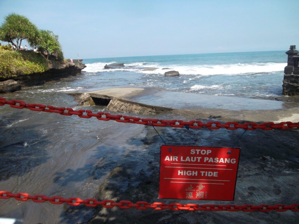 Dari sana kami kemudian berjalan ke arah pura penataran dan pura tanah lot. Sayangnya karena air laut sedang pasang kami tidak bisa ke pura tanah lot. Padahal kalau bisa turun, kita bisa melihat ular dan mata air disana. Harusnya survei dulu kapan waktu pasang dan surutnya air laut kalau mau kesini. Oh iya kalau kesini jangan lupa ambil booklet informasi di bagian depan tempat pengecekan tiket. Cukup informatif isinya ^^