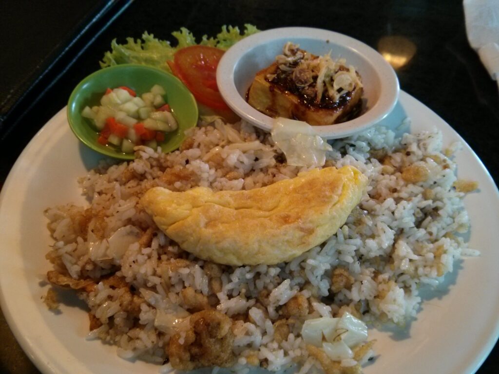 Nasi goreng cikur (kencur). Rasanya mengingatkan saya kepada nasi tutug oncom, tapi oncomnya diganti dengan remahan keripik tempe. Porsinya kebanyakan buat saya.