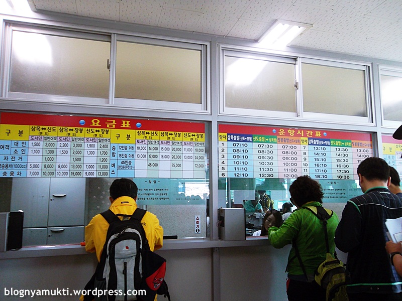 You can see the ticket price at the left side. The one way ticket to Sindo is 2000 KRW for adults and 1300 KRW for kids. If you go as a group > 12 people, you can get cheaper price. And there’s additional fee if you bring your own bike or car.