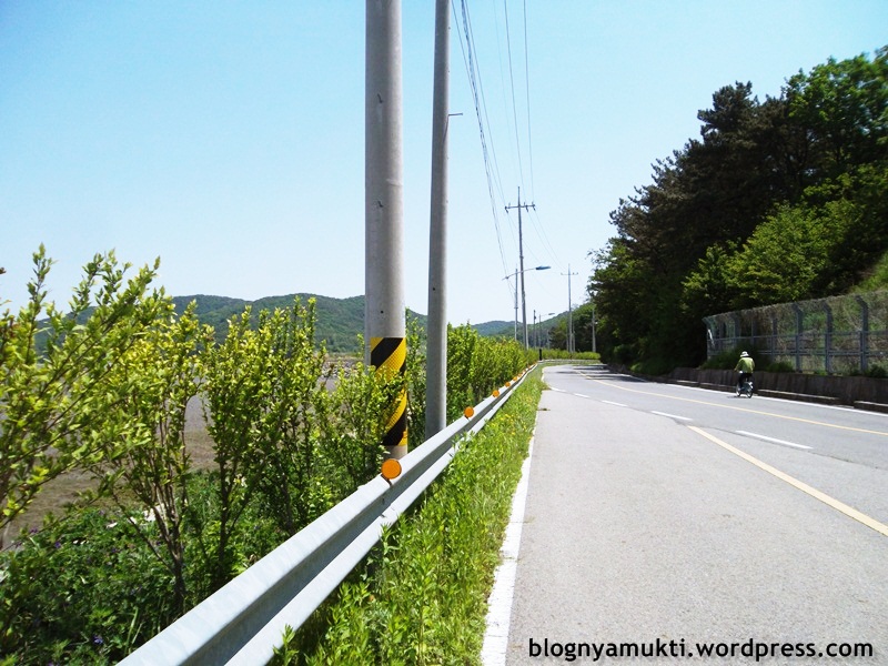 I was nervous when I just started my bike trip for 10 minutes but I already found an uphill road. I failed to reach the end of the road by bicycle. lol. When people saw me, I acted like I was lost. An ahjussi asked me where I wanted to go and then told me to follow him and 2 other ahjummas. Haha. So I followed him. The road in Sindo was very quiet. I can count the number of car I saw with my own fingers. Some times I stopped by to take picture. And then I realized, I couldn’t see ahjussi anymore. I arrived in an intersection, and because one of the road seemed easier and more interesting, I went to that side. I saw a park with pavillion there. I followed the road, but the road was heading to smaller road. I couldn’t identify the place in the map. You know, I’m not good in map reading. I was really getting lost this time. Haha. After trying to figure out by myself, I ended up asking an ahjussi nearby. But I still couldn’t figure it out and finally opened the map from my phone. I followed the map, and found the right road. Yeayyy. I saw some bikers too, so I was sure it’s the right one.