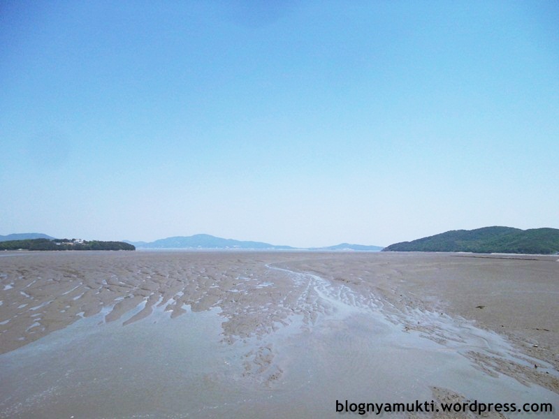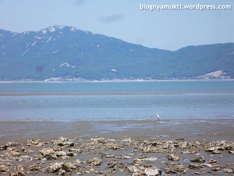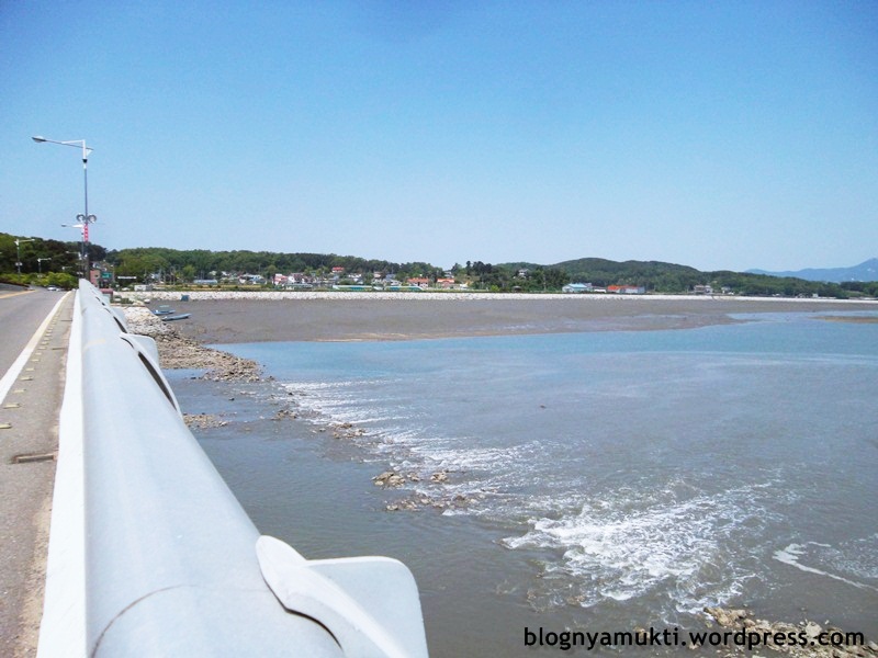My destination in Sido is Sugi Beach. It’s difficult to park the bike on beach sand. The sand kept eating the bike upstand. lol. Fortunately, i found a board so i can park the bike easily. The beach is different from the beach I usually found in my hometown. A lot of big stones at the beach. What interesting is I saw sea birds there! The long-legs sea birds, i don’t know the bird name. And I can see Manisan Mt. in Ganghwado from the beach. I want to go there too next time, hehe.