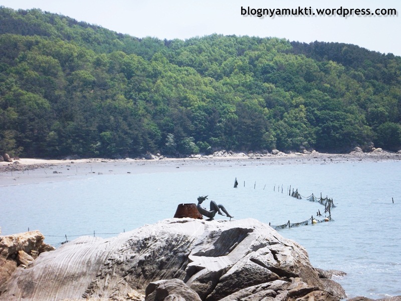 After that I continued my trip to Modo Island. There are interesting statues near the bridge connecting Sido and Modo. Again, I met another ahjussi asking me if I go there by myself and planned to go to all the islands. He told me to enjoy the trip. Hehe, thanks ahjussi! Well, I guess I looked very striking there. I’m a foreigner but not from the western countries. I only wore casual clothes, not special clothes for bike riding. So I understand if people looking at me strangely. Just imagine a bule riding a bike in some quiet village in Indonesia. How will people there looking at her? Kkkk.