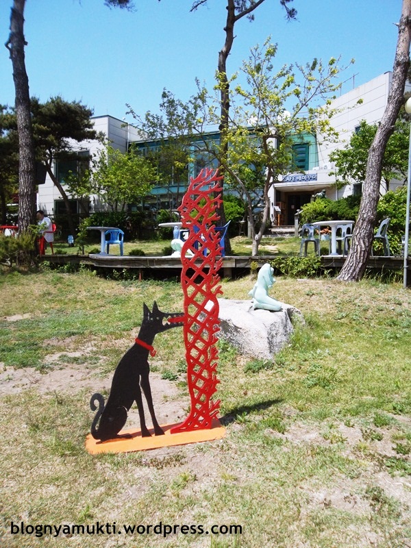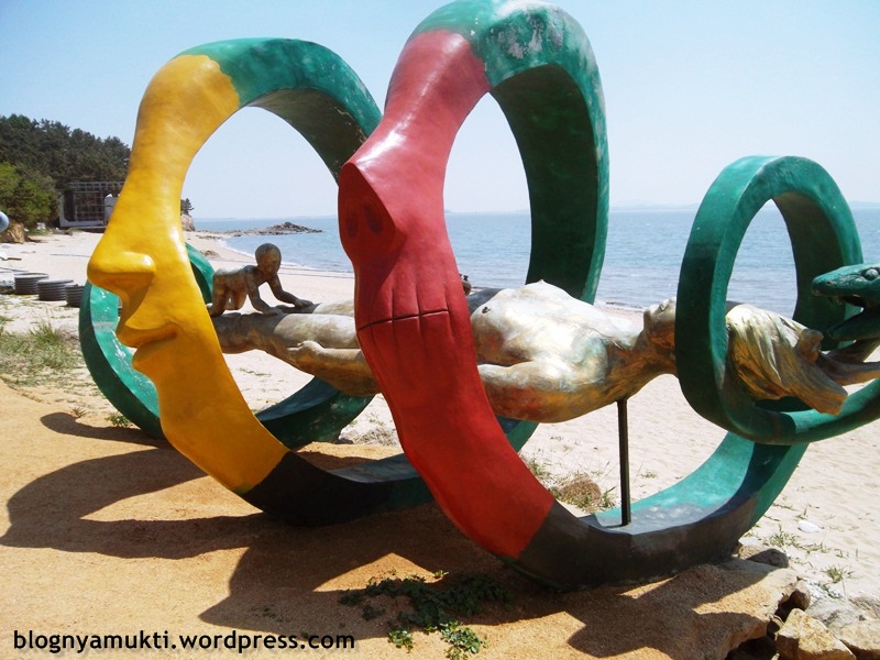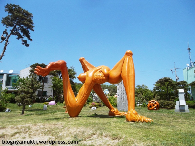My destination in Modo is Baemikkumi Sculpture Art. The entrance fee is 2000 KRW. The sculptures here are kinda …. erotic. lol. I’ve seen the pictures from the internet before so I wasn’t shocked. I was more shocked by parents that bring their kids to this park. Hahaha. It’s awkward for me. The park is in seaside. It’s nice to see beach again. I can see airplanes flying really close to the island for several times. (Airport is just across the island)