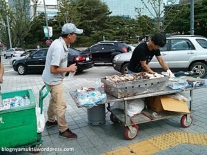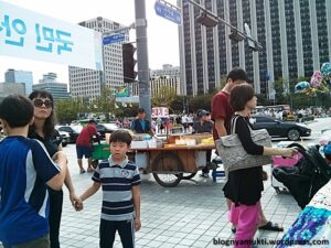 Saya memutari Gyeongbokgung dan menemukan banyak penjual street food di sisi satunya. Ada penjual waffle, dakkochi (chicken on stick), dan macam-macam lagi. Disana juga terdapat beberapa museum, antara lain National Folk Museum, Children Museum, Kumho Museum, dan World Jewellery Museum.