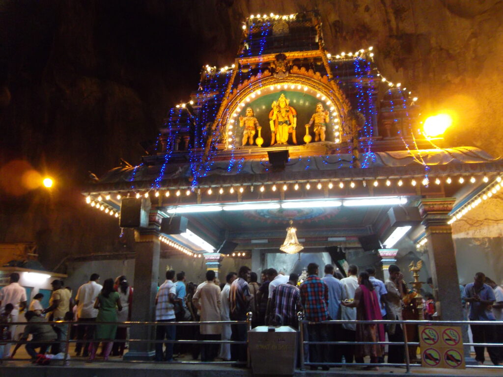 Jalan masuk ke gua, di kanan kirinya banyak patung-patung. Trus ada kuil utama yang lagi rame dipake sembahyang juga. Trus ada tangga lagi di dalamnya, ada kuil lagi. Nama kuilnya Sri Valli Deivanai Murugan Temple. Dan tepat di atas kuil itu guanya nggak ada atap alias bolong. Puas lihat-lihat gua, saya keluar dan turun. Nggak enak juga lama-lama disini, soalnya kuilnya lagi dipake. Pas turun, kita bisa liat pemandangan kota. Di bawah, foto-foto sekitarnya lagi. Trus baru deh beranjak keluar.