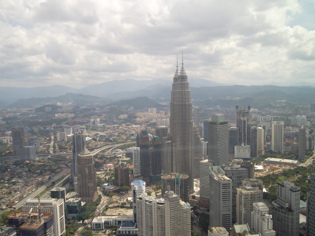 Selesai makan, muter-muter cari oleh-oleh. Akhirnya dapet pajangan petronas yang kecil seharga RM 5, yang besar RM 10, dan pena lucu gitu. Beli postcard juga. Trus masuk toko coklat, udah dikasih tester macem-macem nggak enak kalo nggak beli akhirnya beli coklat juga 3 kotak disitu. Hahahaha, nasib nggak bisa nolak. Udah capek muter-muter, keluar dari Central Market. Tujuan selanjutnya sebenernya adalah kawasan China Town: Jl. Petaling, Sri Mahamariamman Temple, dan sekitarnya. Tapi karena saya nggak jago baca peta, kok malah jalan ke arah Pasar Seni station. Karena capek dan males balik lagi, akhirnya saya masuk aja ke stasiun, trus naik ke KLCC station. Menuju Petronas Twin Towers!