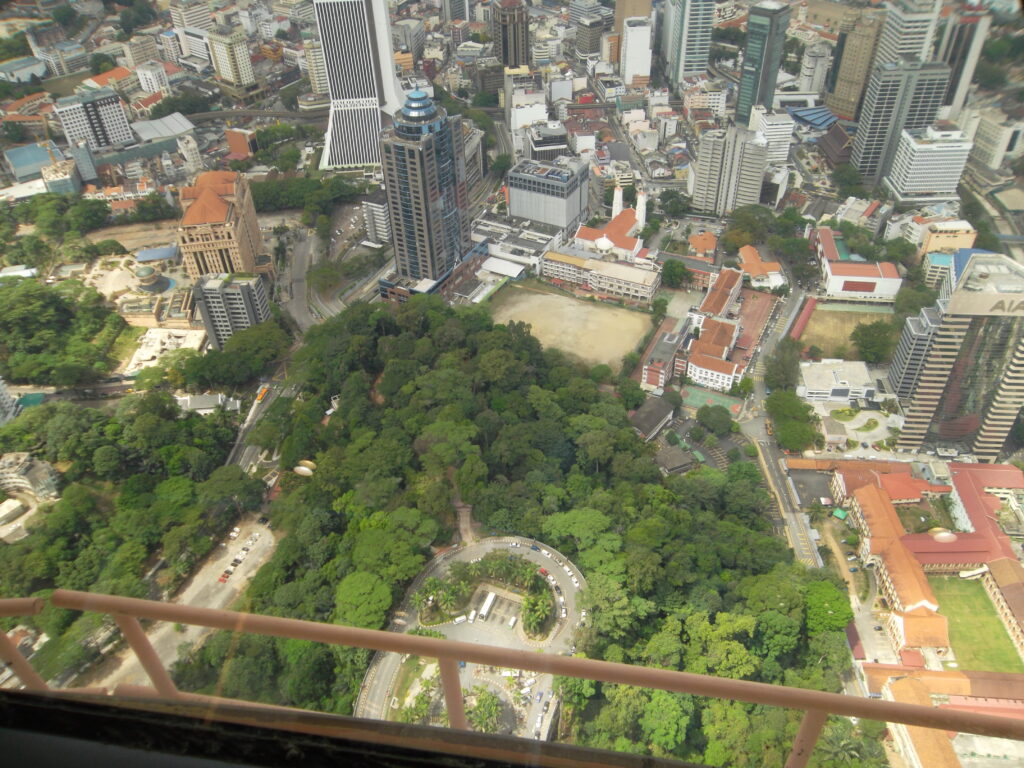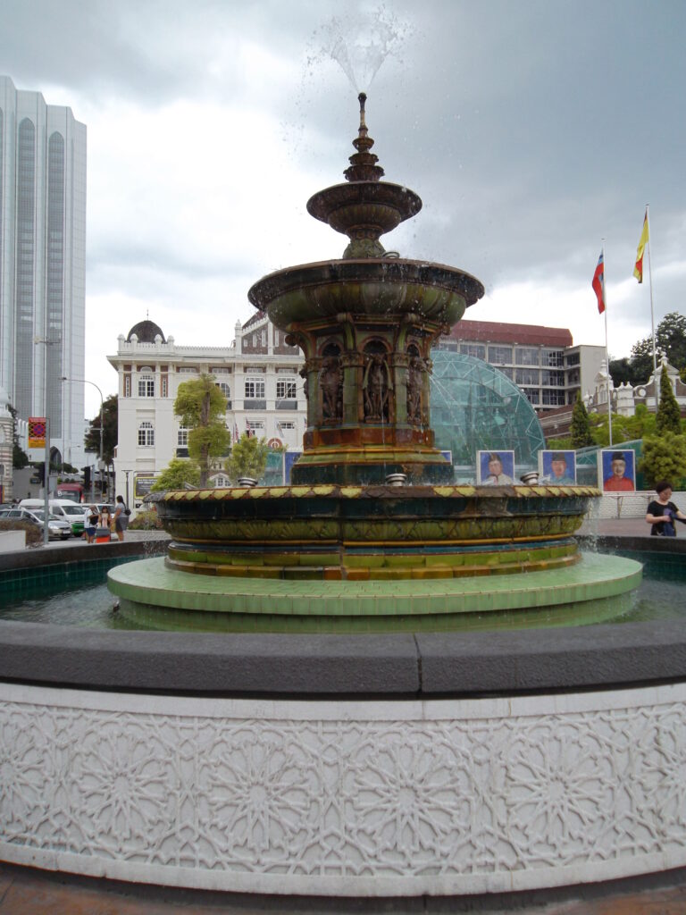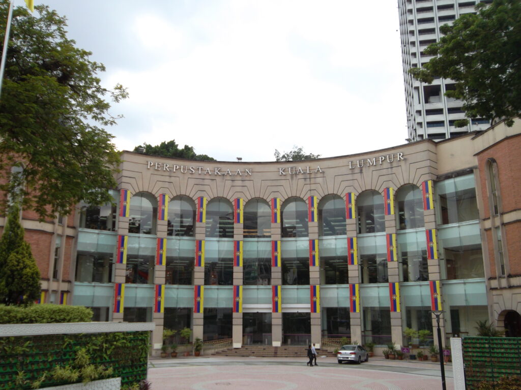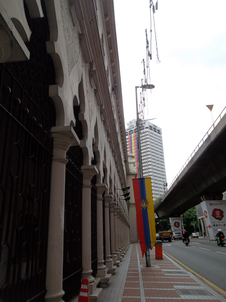 Sebelum masuk, difoto dulu dengan latar belakang gambar KL Tower. Foto ini hasil cetakannya bisa dibeli di booth di depannya. Pas masuk, antre naik lift. Lift-nya cepat, trus dia ngasih tau gitu kita udah ada di ketinggian berapa. Sampai di atas, langsung masuk ke observation deck-nya. Wahhh, seru banget bisa liat view KL 360º. Dari sana bisa kelihatan Petronas Twin Towers, Dataran Merdeka, dan berbagai tempat lain yang saya nggak ingat namanya. Di setiap sisi ada tulisannya kok itu view ke daerah mana. Trus ada teropong juga, nggak perlu bayar lagi kalau mau pake. Saya nyobain teropong untuk lihat ke arah Petronas Twin Towers. Karena tiketnya lumayan mahal, saya berlama-lama disini. Sayang dong udah beli mahal disini cuma sebentar. Pokoknya disitu saya muter-muter lihat pemandangan, trus duduk-duduk santai, nggak jelas deh. Setelah bosen, baru saya turun. Naik shuttle lagi ke gerbangnya, trus jalan lagi ke Dang Wangi. Dari Dang Wangi naik LRT lagi ke Masjid Jamek station. Dari Masjid Jamek station, saya jalan ke Masjid Jamek yang berada tepat di sebelahnya. Tadinya mau sholat disana tapi waktu dzuhur masih 1 jam lagi, akhirnya nggak jadi deh. Lanjut jalan ke arah kawasan Dataran Merdeka. Jadi Dataran Merdeka itu adalah lapangan tempat pertama kalinya Malaysia mendeklarasikan kemerdekaannya. Disana juga ada tiang bendera setinggi 95 m, salah satu yang tertinggi di dunia. Juga ada Victorian Sanitary Board Fountain. Di sekitarnya banyak bangunan-bangunan tua bersejarah. Antara lain, St. Mary Cathedral, Sultan Abdul Samad Building, KL City Gallery, dan Old Seasons & Magistrates Court Building. Untuk yang relatif baru, ada KL Library.