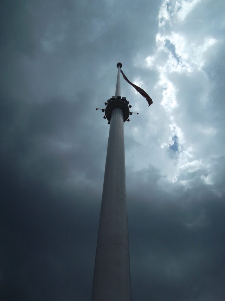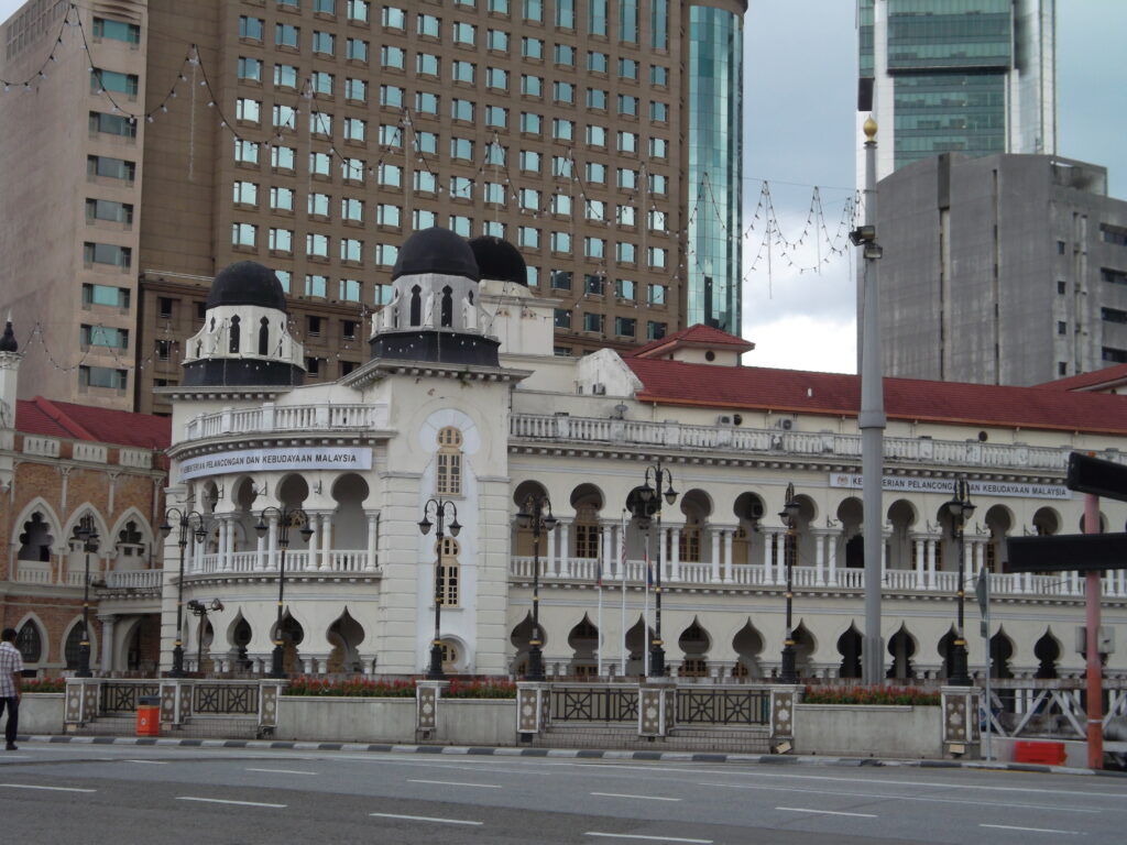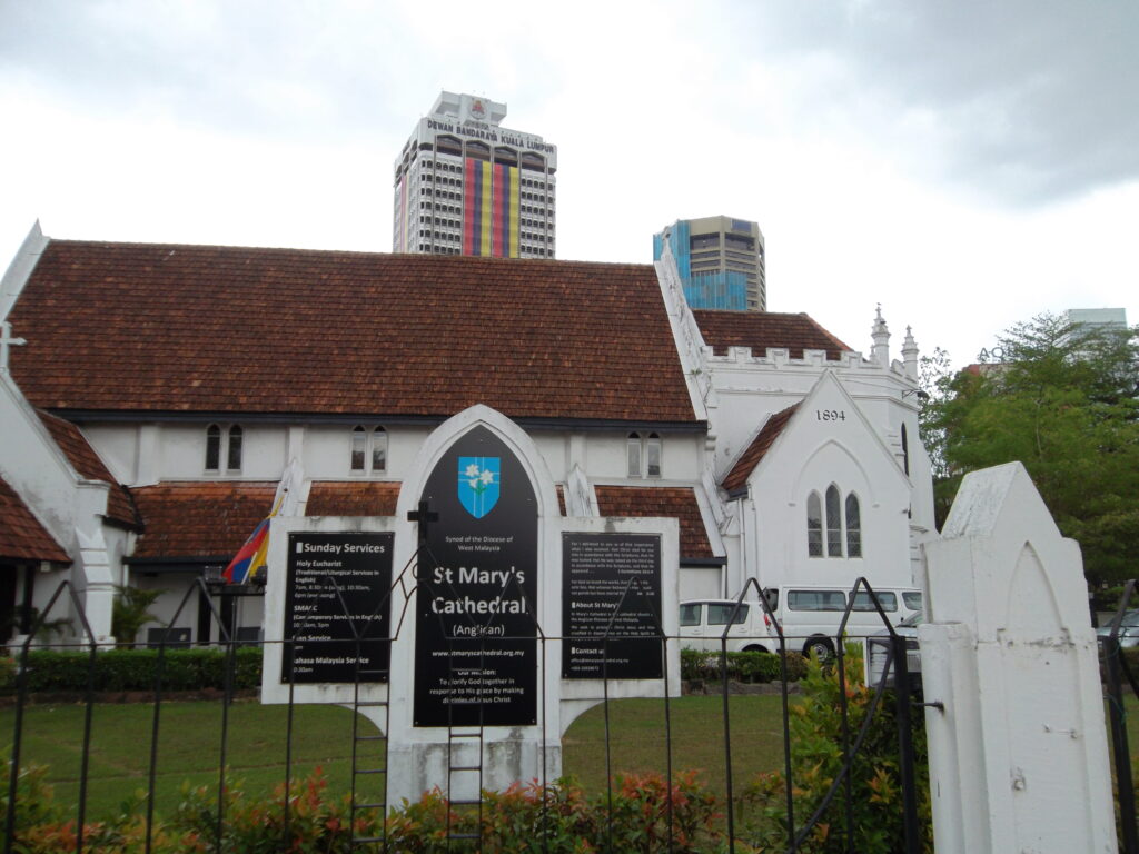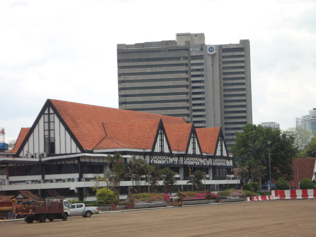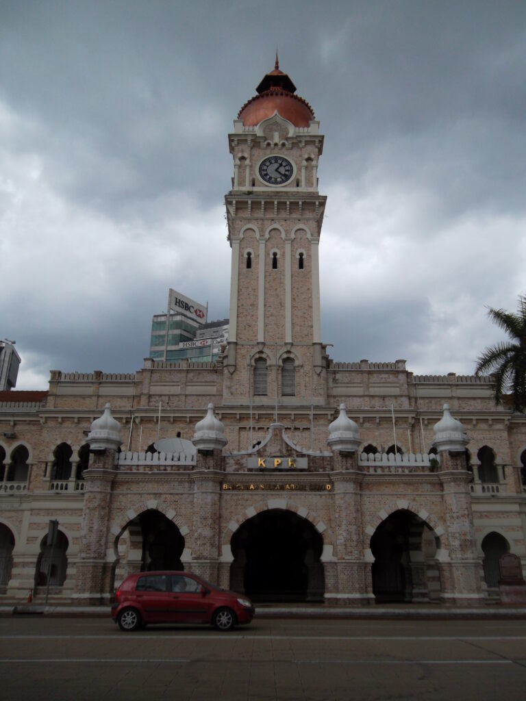 Sebelum masuk, difoto dulu dengan latar belakang gambar KL Tower. Foto ini hasil cetakannya bisa dibeli di booth di depannya. Pas masuk, antre naik lift. Lift-nya cepat, trus dia ngasih tau gitu kita udah ada di ketinggian berapa. Sampai di atas, langsung masuk ke observation deck-nya. Wahhh, seru banget bisa liat view KL 360º. Dari sana bisa kelihatan Petronas Twin Towers, Dataran Merdeka, dan berbagai tempat lain yang saya nggak ingat namanya. Di setiap sisi ada tulisannya kok itu view ke daerah mana. Trus ada teropong juga, nggak perlu bayar lagi kalau mau pake. Saya nyobain teropong untuk lihat ke arah Petronas Twin Towers. Karena tiketnya lumayan mahal, saya berlama-lama disini. Sayang dong udah beli mahal disini cuma sebentar. Pokoknya disitu saya muter-muter lihat pemandangan, trus duduk-duduk santai, nggak jelas deh. Setelah bosen, baru saya turun. Naik shuttle lagi ke gerbangnya, trus jalan lagi ke Dang Wangi. Dari Dang Wangi naik LRT lagi ke Masjid Jamek station. Dari Masjid Jamek station, saya jalan ke Masjid Jamek yang berada tepat di sebelahnya. Tadinya mau sholat disana tapi waktu dzuhur masih 1 jam lagi, akhirnya nggak jadi deh. Lanjut jalan ke arah kawasan Dataran Merdeka. Jadi Dataran Merdeka itu adalah lapangan tempat pertama kalinya Malaysia mendeklarasikan kemerdekaannya. Disana juga ada tiang bendera setinggi 95 m, salah satu yang tertinggi di dunia. Juga ada Victorian Sanitary Board Fountain. Di sekitarnya banyak bangunan-bangunan tua bersejarah. Antara lain, St. Mary Cathedral, Sultan Abdul Samad Building, KL City Gallery, dan Old Seasons & Magistrates Court Building. Untuk yang relatif baru, ada KL Library.