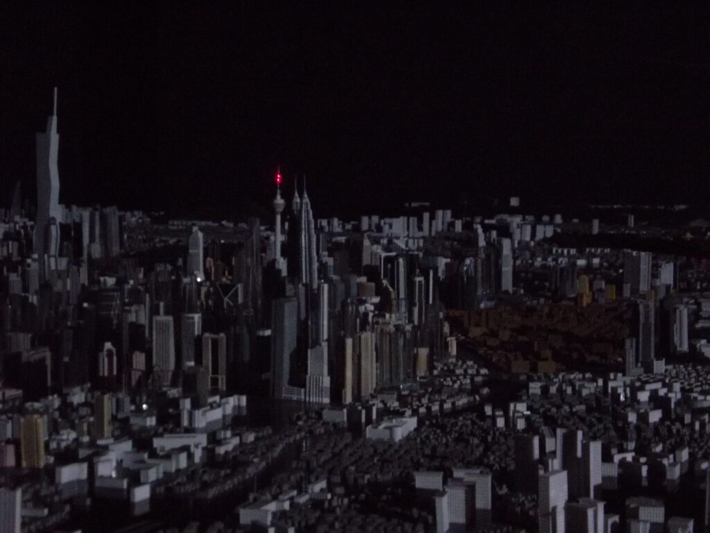 Di KL City Gallery, kita bisa mendapatkan penjelasan mengenai kota Kuala Lumpur. Ada juga miniatur Dataran Merdeka dan penjelasan mengenai gedung-gedung yang ada di sekitarnya. Di lantai 2, kita akan masuk ke sebuah ruangan gelap untuk menyaksikan pertunjukan laser yang dimainkan di atas miniatur kota Kuala Lumpur. Ada penjelasan melalui video juga. Kita boleh mengambil gambar, tapi tidak boleh menggunakan flash. Keren deh pokoknya. Sayang suaranya nggak terlalu jelas. Saat menunggu pertunjukan berikutnya, saya sempat ketemu ibu-ibu TKW yang kerja disitu. Jadi pertamanya si ibu lagi ngobrol sama temen kerjanya yang orang malaysia ngasih tau bahasa indonesia jalan-jalan atau apa gitu. Trus saya nyamber aja “bu, dari indonesia? saya juga”. Trus si temennya bilang “wah, sekampung”. Pffttt. Agak-agak sebel juga sih dibilang sekampung. Hahaha. Berasanya semua orang Indonesia itu dari kampung terpelosok gitu. Intinya sih cuma ngobrol sebentar sama si ibu. Trus ya si ibu walopun baru setahun disana, logatnya udah melayu gitu jadi awkward pas ngobrol karena saya pake bahasa indonesia sehari-hari gitu. Hahaha.