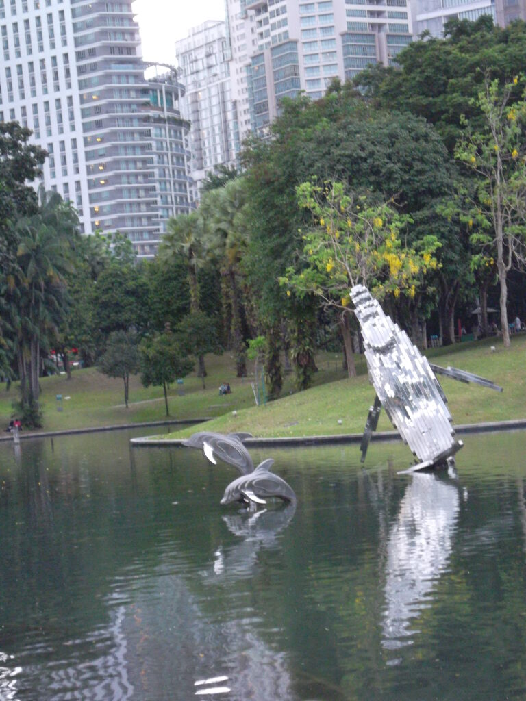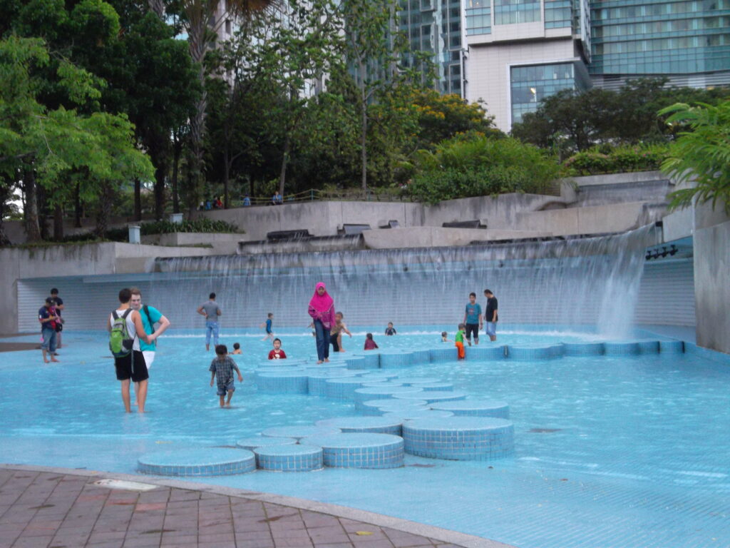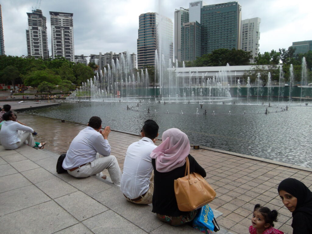 Karena sudah masuk waktu ashar, saya pun sholat dulu di mushollanya. Setelah itu baru ke arah luar untuk melihat Petronas Twin Towers. Foto-foto disitu, nggak lama kemudian eh ujan. Akhirnya duduk-duduk di pinggir nunggu hujannya reda sekalian nunggu malam. Jadi ceritanya saya sengaja ke petronas pas udah sore karena emang nunggu view malamnya juga. Setelah hujannya agak reda, saya jalan ke arah KLCC Park. Lokasinya di sisi lain petronas. Begitu keluar, kita bisa melihat kolam yang ada permainan air mancurnya. Banyak yang duduk-duduk sekitar kolam, saya pun ikutan. Habis itu, baru jalan ke arah tamannya. Disana ada taman bermain anak, track lari, dan kolam renang. Eh, nggak berapa lama disana turun hujan lagi. Akhirnya masuk lagi ke Suria. Nunggu maghrib, sholat, kemudian balik lagi ke depan Petronas. Setelah ambil foto Petronas Twin Towers versi malam, lanjut cari jalan ke Bukit Bintang. Jadi, rencana selanjutnya adalah makan di Jl. Alor.