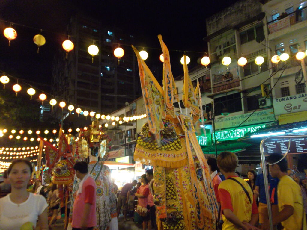 Untuk ke Bukit Bintang dari KLCC, bisa naik bis Go KL gratis atau jalan di walkway ber-ac yang menghubungkan Suria KLCC dan Pavilion di Bukit Bintang. Tapi saya nggak nemu pemberhentian Go KL, jadinya yaudah cari walkway aja. Begitu masuk walkway, karena udah capek jalan seharian dan ngebayangin jalannya masih jauh, rasanya saya pengen ngesot aja. Sekitar setengah jam baru sampe ujungnya di Pavilion. Masuk ke dalam mall, cari jalan keluar. Begitu keluar, bingung mesti kemana. Saya mengabaikan kata hati saya yang bilang “ikutilah kemana banyak orang pergi”. Akhirnya jalan melawan keramaian, begitu sampe titik tertentu saya hilang arah. Saya lihat stasiun monorail, dan saya kira saya nyasar jauh. Akhirnya balik lagi ke Pavilion. Lagi-lagi sotoy jalan ke arah lain. Dan itu makin nggak jelas dimana. Banyak makanan sih disitu, tapi saya harus tetap ke Jalan Alor. Karena dari sanalah saya bakal tahu jalan pulang. Akhirnya balik lagi ke Pavilion, sekarang mengikuti kemana orang-orang rame jalan. Hmm, ternyata sama dengan arah pertama tadi. Dan seharusnya dari sana saya tinggal nyeberang. Duhh. Udah capek & laper jadi nggak bisa baca peta dengan benar. Dari nyeberang tadi, masih jalan lumayan jauh. Dan akhirnya saya melihat papan petunjuk Jl. Alor. Akhirnyaaaa. Karena haus, saya pun langsung beli Air Mata Kucing. Not as good as I expected sih, cuma ya karena haus apapun terasa enak. Pas saya kesana lagi ada perayaan gitu, entah perayaan apa yang pasti ada ondel-ondel serem versi chinese gitu. Sambil nonton itu, saya pun cari makanan yang bisa dimakan. Ekspektasinya, saya bakal nemu makanan melayu ataupun india disini. Tetapi oh tetapi, dari ujung ke ujung, yang saya temukan hanya restoran chinese food. Mana saya bisa makan disitu. Udah mau nangislah. Udah kesananya penuh perjuangan, sampe tempatnya nggak ada yang bisa dimakan. Sedih nggak sih. Untungnya ada satu kios yang jualnya pake jilbab, yaudah saya kesana aja. Makanannya standar ada sayur kangkung, kari ayam, ikan, kayak warteg gitu lah. Akhirnya saya beli makanan disitu dan minta dibungkus.