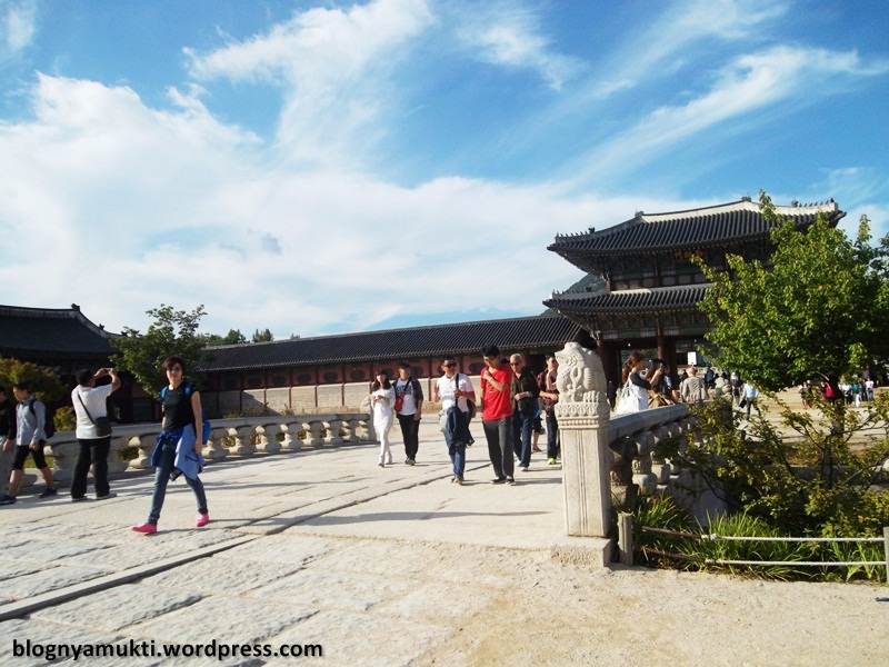 After filling up my stomach in Tongin Market, I went to Gyeongbokgung Palace. Last time I was there, I didn’t go inside. This time, I kinda hesitant whether I should go inside or not. Then, I saw a big banner informing that there was no admission fee for that day. So, of course, I went inside. Haha. Normal admission fee is 3000 KRW for adults.