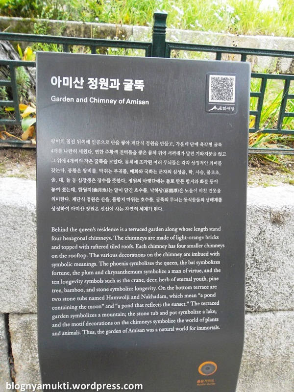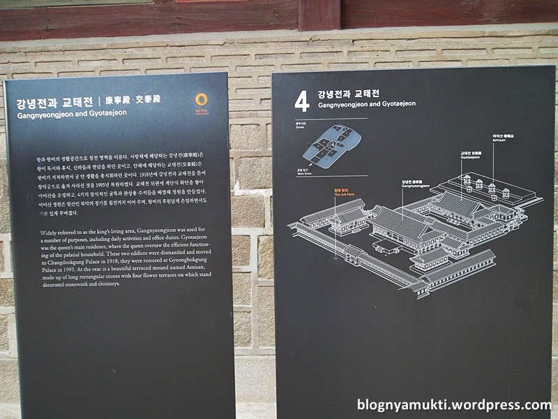 Next, Gangnyeongjeon and Gyeotaejeon. This area is widely referred as king’s living area. Gangnyeongjeon was used for a number of purposes, including daily activities and office duties. At the rear is a beautiful terraced mound named Amisan, made up of a long rectangular stones with four flower terraces on which stand decorated stonework and chimneys.