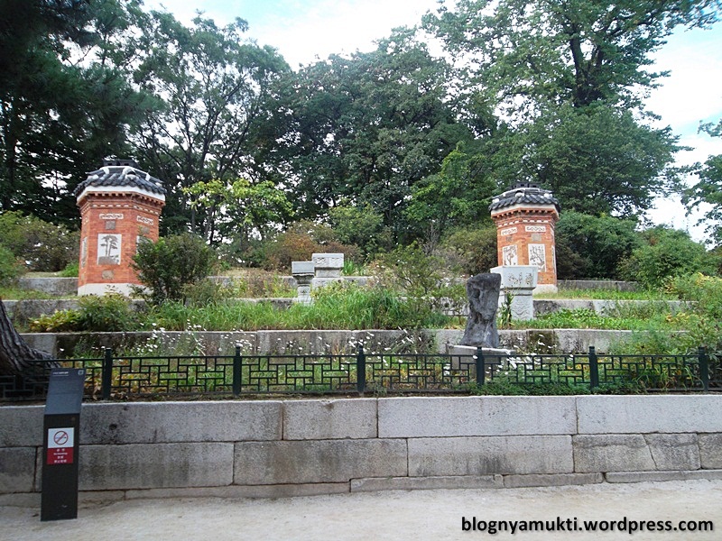 Too bad, I didn’t have enough time to take a picture there. It was almost 6 PM, the closing time of Gyeongbokgung. I was wandering around the northwest side of the palace, where Taewonjeon located. Taewonjeon was built as the Royal Coffin Hall of Gyeongbokgung. Nearby were buildings for funeral ceremonies, which were removed during the Japanese occupation. Reading the desription gave me a goosebump, so I didn’t enter the area and went back to the northeast side where Hyangweonjeong is located.