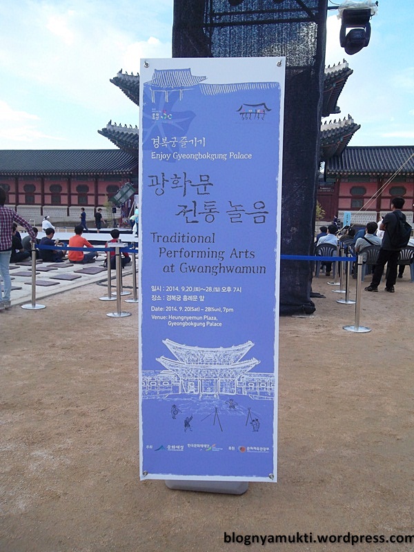 But my journey in Gyeongbokgung didn’t end there. There was traditional performance in front of Heungnyemun Gate at 7 PM. And yes, it’s free. It was veryyy interesting. There were dance with traditional drum, jultagi (tightrope-walking), pungmul, and short musical drama. That was a really great experience.