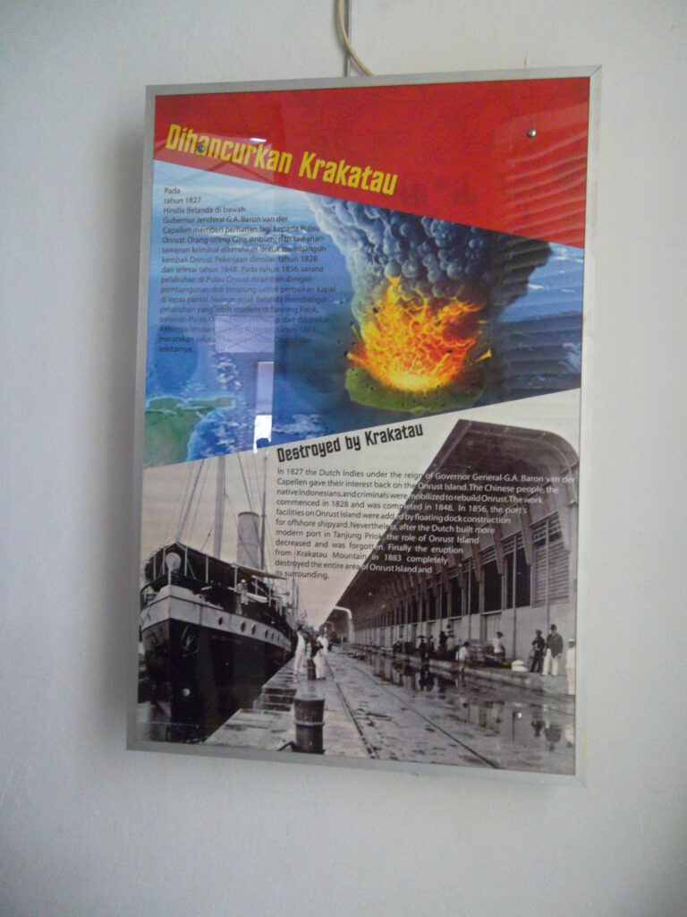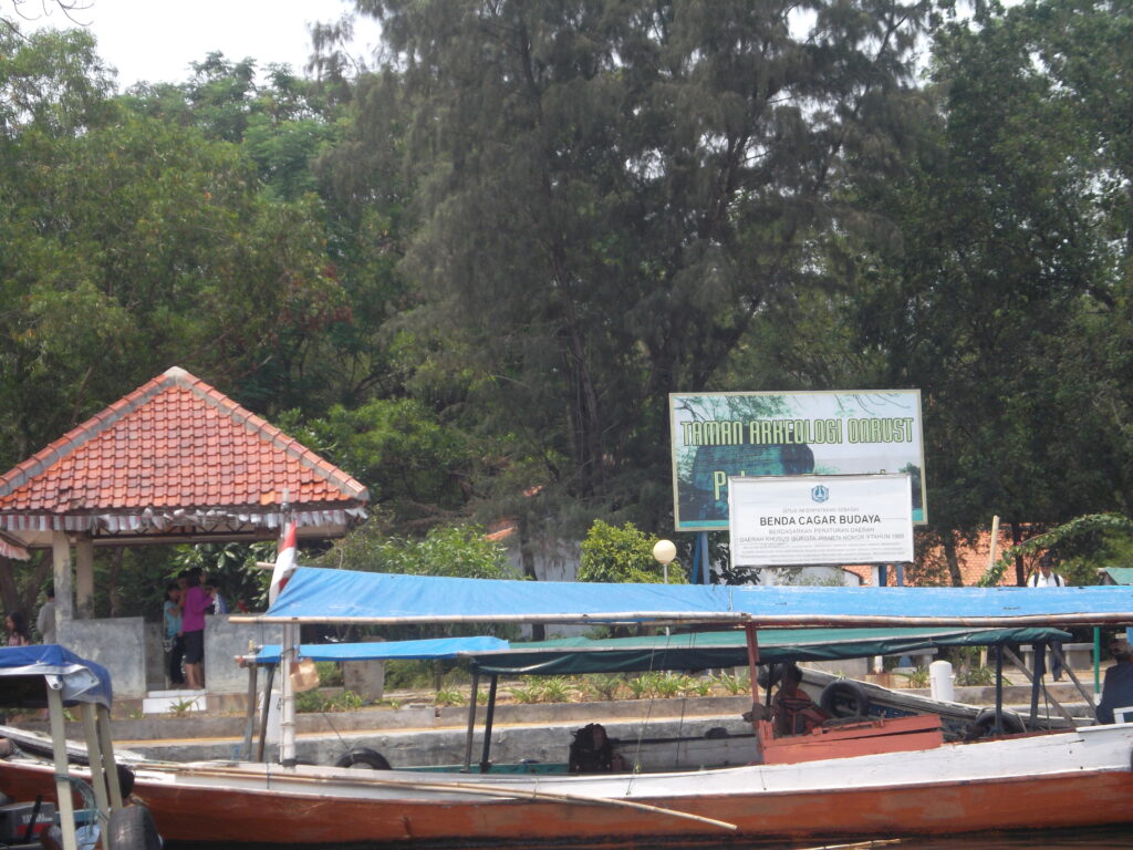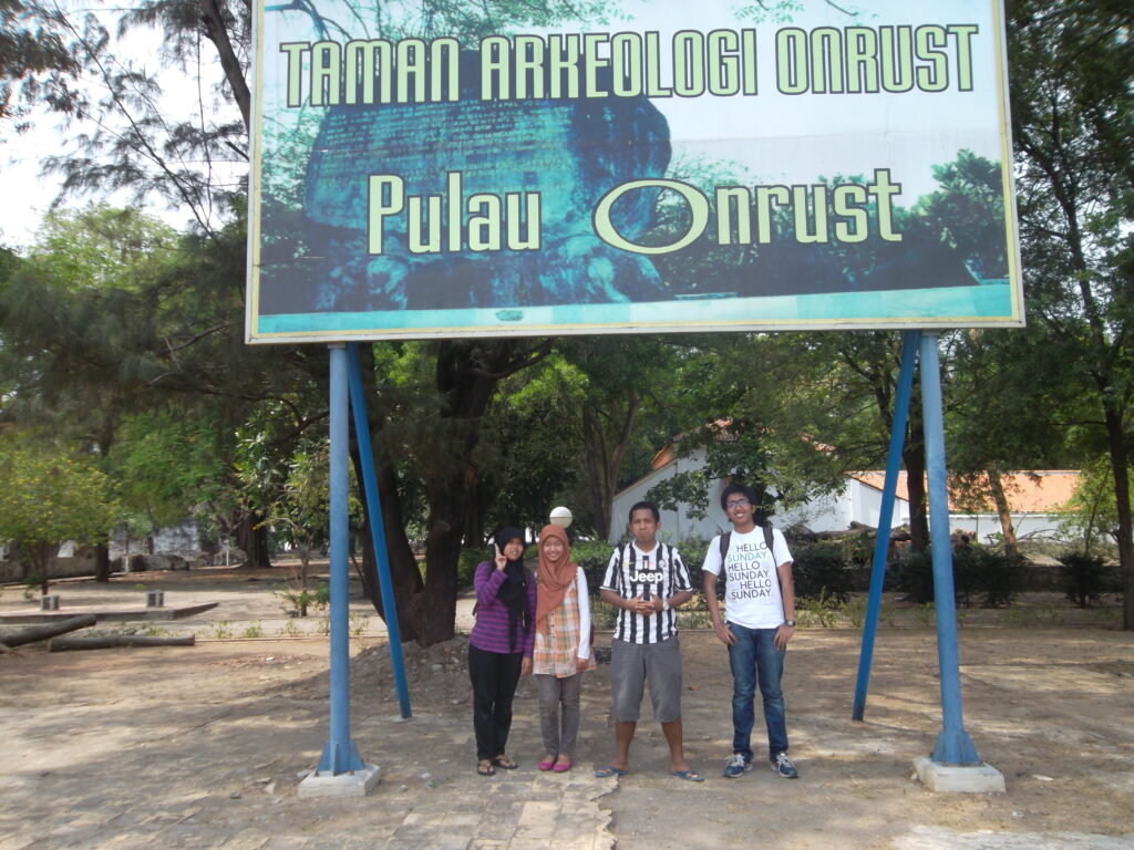 Setelah Pulau Kelor, kami kemudian naik kapal lagi ke Pulau Onrust yang letaknya tidak terlalu jauh dari Pulau Kelor. Pulau Onrust merupakan salah satu situs cagar budaya. Di pulau ini terdapat museum kecil yang menceritakan sejarah Pulau Onrust. Ada petugas yang menjadi guide. Petugas memandu kami mengelilingi pulau, dimulai dengan bercerita mengenai reruntuhan bangunan yang tadinya merupakan rumah sakit dan karantina haji, kemudian masuk ke museum, melewati bekas penjara, dan terakhir ke makam yang dianggap keramat. Sayangnya saya ada di barisan belakang rombongan, jadi penjelasan dari guide kurang terdengar. Satu lagi yang saya sayangkan adalah pulau ini tampak kotor dan tidak terurus. Setelah keliling pulau, kami mengambil jatah makan siang dari penyelenggara tur kemudian sholat di musholla kecil yang ada di pulau ini.