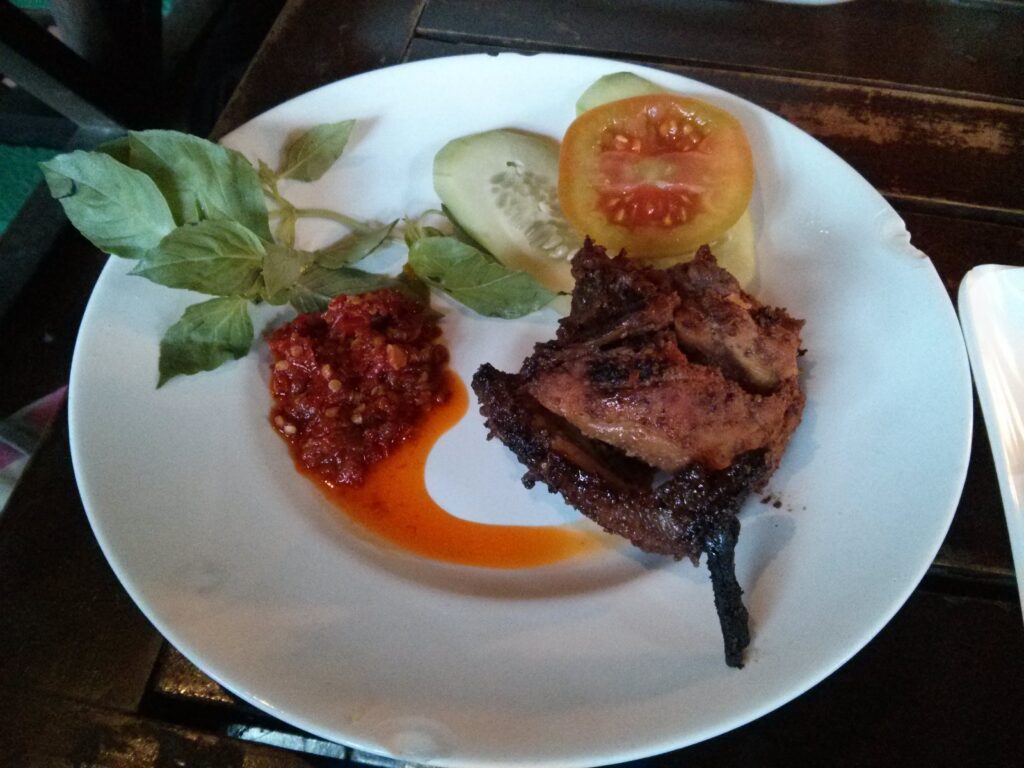 Berangkat dari Bandung pukul 07.00 dengan kereta yang alhamdulillah tepat waktu, saya sampai di Jogja sekitar pukul 15.00. Saya dijemput adik saya, Lia, yang kuliah di Jogja menuju asrama-nya. Disana sudah ada adik saya satu lagi, Tika, yang datang sehari sebelumnya. Karena kami mau pergi menggunakan motor, padahal kami ada 3 orang dan motornya cuma 1, adik saya pun sibuk telpon sana-sini mencari penyewaan motor yang masih available. Dan ujung-ujungnya malah dapet motor dari penyewaan tepat di sebelah asrama yang sebelumnya sudah didatangi tapi habis. Kalau nggak salah, harga sewanya 40ribu per hari. Kami pun segera meluncur ke Raminten, restoran yang cukup terkenal di Jogja. Terkenalnya mulai dari kemistisannya, pelayannya yang katanya banyak pria melambai, dan yang terutama karena menunya yang unik dengan harga murah meriah. Sampai di Raminten, saking ramainya kami pun masuk waiting list dulu. Setelah menunggu lumayan lama, kami akhirnya mendapatkan tempat. Bau menyan langsung tercium saat masuk ke bagian dalam restoran. Karena sudah kelaparan, langsung deh pesan makanannya. Saya pesan nasi liwet (3ribu rupiah saja sodara-sodara) dan susu jahe. Untuk rame-rame, saya pesan tempe mendoan dan ikan wader. Adik saya pesan masing-masing ayam bakar dan ayam rica-rica. Minumnya es jeruk nipis dan es krim bakar. Beginilah penampakan makanan yang kami pesan: